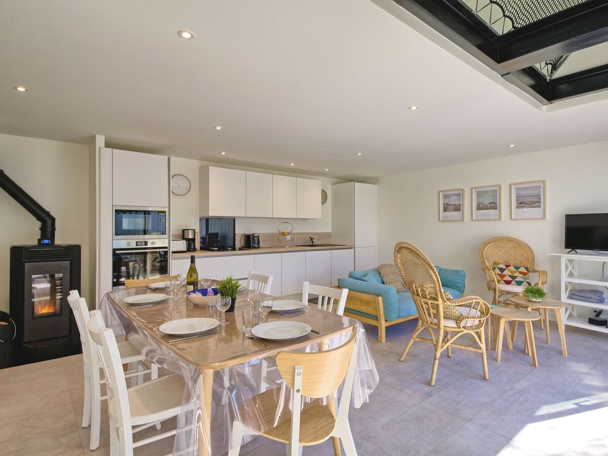 Cuisine ouverte (four, lave-vaisselle, 2 plaques à induction, 2 feux, grille-pain, bouilloire électrique, micro-ondes, cafetière électrique, Capsules pour machine à café (SENSEO) (NON INCLUSES)).