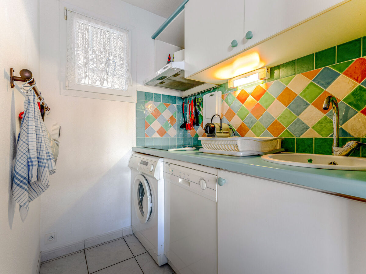 Cuisine (lave-vaisselle, 4 plaques à induction, grille-pain, bouilloire électrique, micro-ondes).
