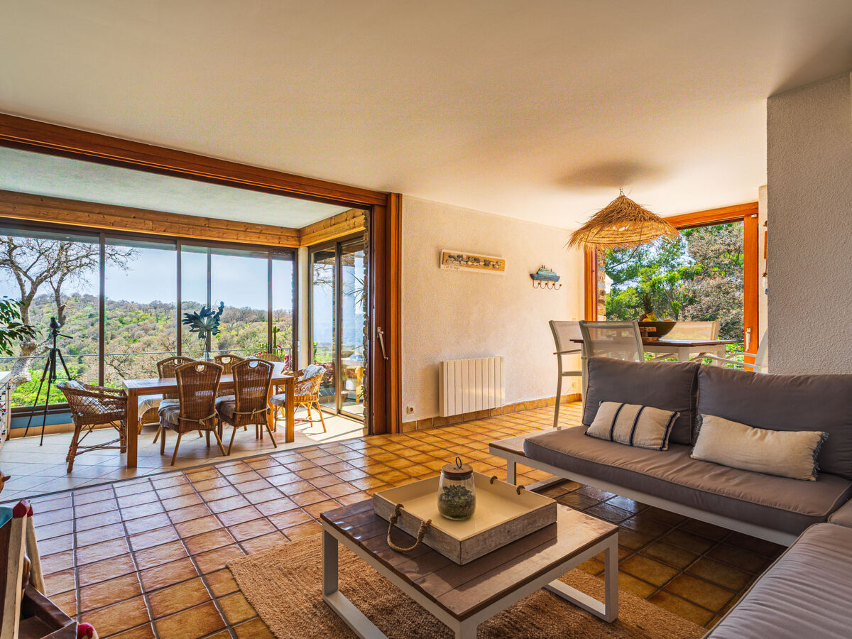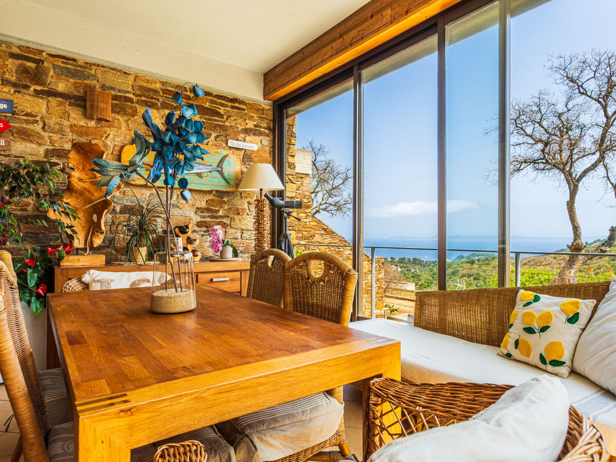 Dans le quartier de Gaou Bénat, dans la localité de Bormes Les Mimosas, situation tranquille sur une colline, dans un quartier résidentiel, à 2.5 km de la mer, à 2.5 km de la plage.