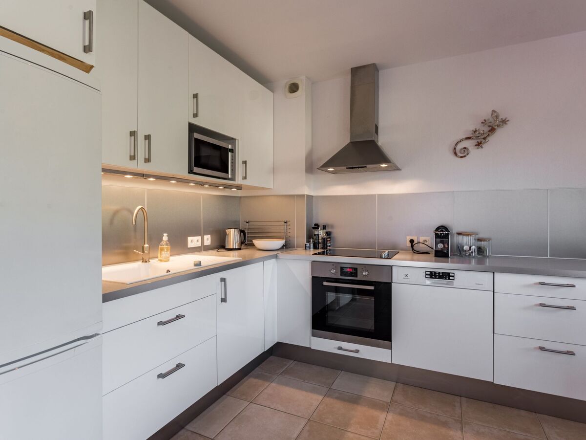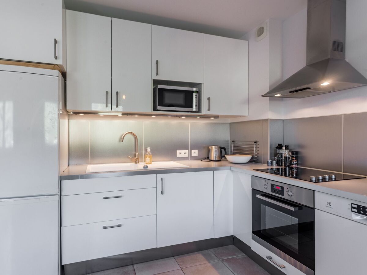Cuisine ouverte (3 plaques de cuisson, four, lave-vaisselle, grille-pain, bouilloire électrique, micro-ondes, cafetière électrique, Capsules pour machine à café (Nespresso) (NON INCLUSES)).