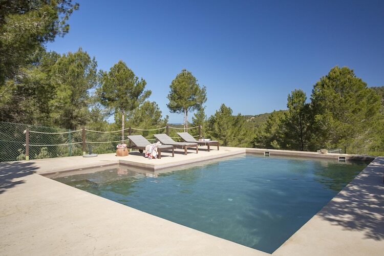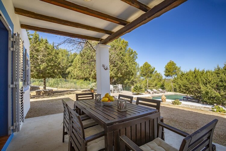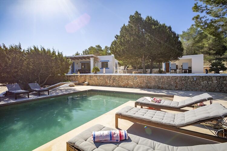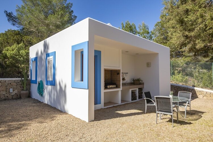 Charmante maison de campagne de style Ibizan à l'architecture minimaliste, qui maintient la fraîcheur avec ses grandes terrasses et permet à la maison d'être complètement absorbée par la nature qui l'entoure; Il dispose d'une véranda d'Ibiza pour un délicieux petit-déjeuner, déjeuner ou dîner avec vue sur la forêt et la piscine et au loin, vous pouvez également voir la mer. La maison dispose d'un grand espace barbecue, entouré d'une pinède, donc la paix et l'intimité font de la maison un lieu privilégié pour se détendre ; La maison de vacances peut accueillir 6 personnes, elle dispose de 3 chambres doubles, de deux grandes salles de bain dont une avec baignoire et d'un WC extérieur. Le salon donne accès au porche pour prendre le petit déjeuner, le déjeuner ou le dîner et à la piscine privée et au barbecue. La maison de campagne dispose de la climatisation dans toutes les chambres, du wifi, d'une cuisine entièrement équipée, de draps et de serviettes de bain.Elle bénéficie d'un emplacement privilégié en raison de sa proximité avec les plus belles plages du sud-ouest de l'île, la plage de Cala Tarida ou Cala Conta avec les plus beaux couchers de soleil de l'île. La ville la plus proche est San José, où vous trouverez presque tout : supermarchés, banques, pharmacies, cafés, poissonneries, boucheries, boulangeries et une grande variété de bars et restaurants. Le restaurant le plus proche, S'Espartar, est à seulement 3 minutes à pied de la maison, l'un des restaurants méditerranéens les plus traditionnels de la municipalité de San José.