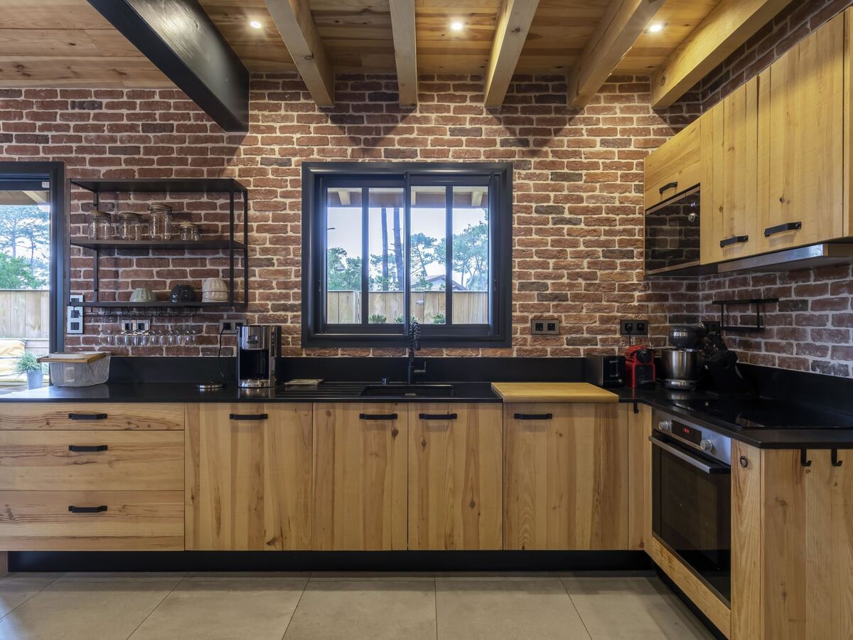 Cuisine ouverte (four, lave-vaisselle, 3 plaques à induction, grille-pain, bouilloire électrique, micro-ondes, cafetière électrique, Capsules pour machine à café (filtre + nespresso) (NON INCLUSES)).
