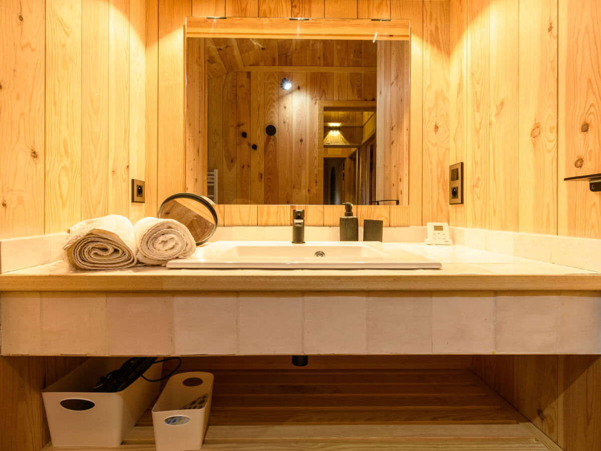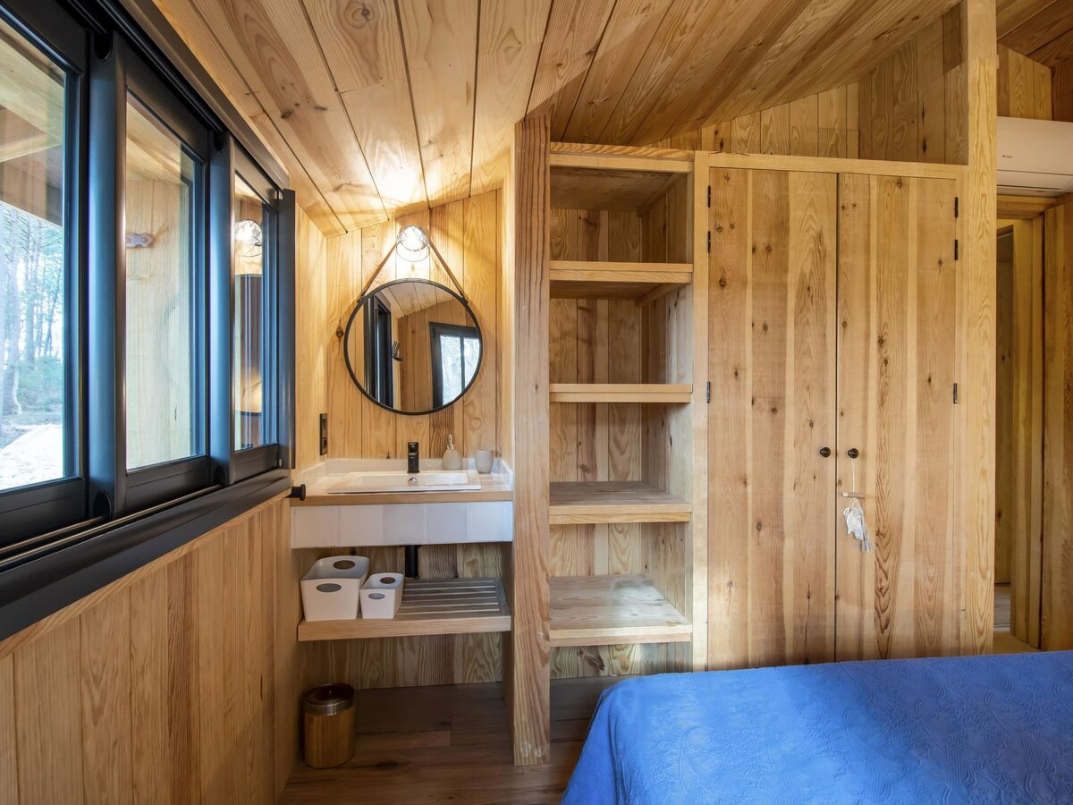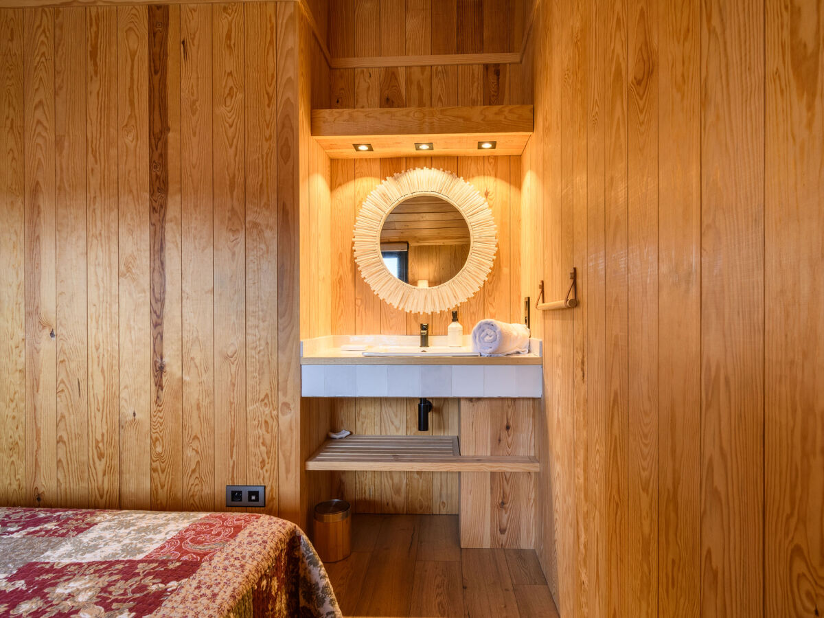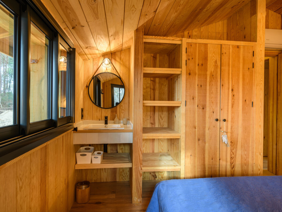1 chambre avec 1 grand-lit (1 x 160 cm, longueur 200 cm), lavabo et air-conditionné.
