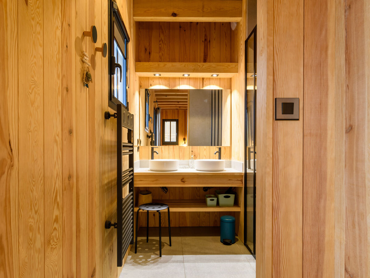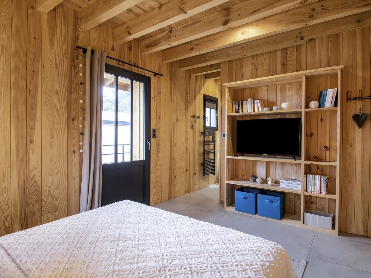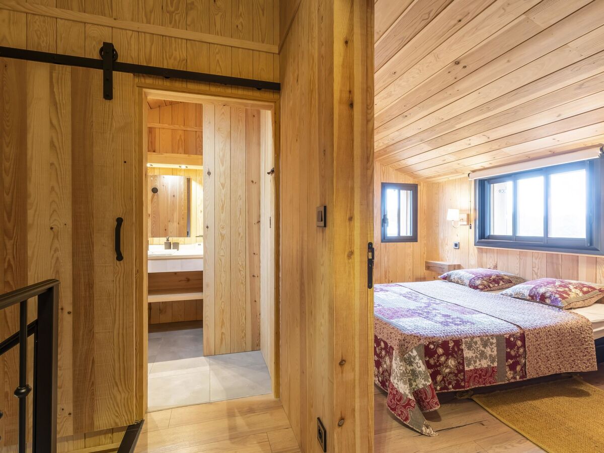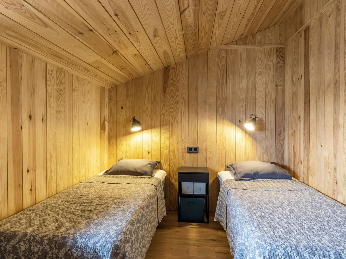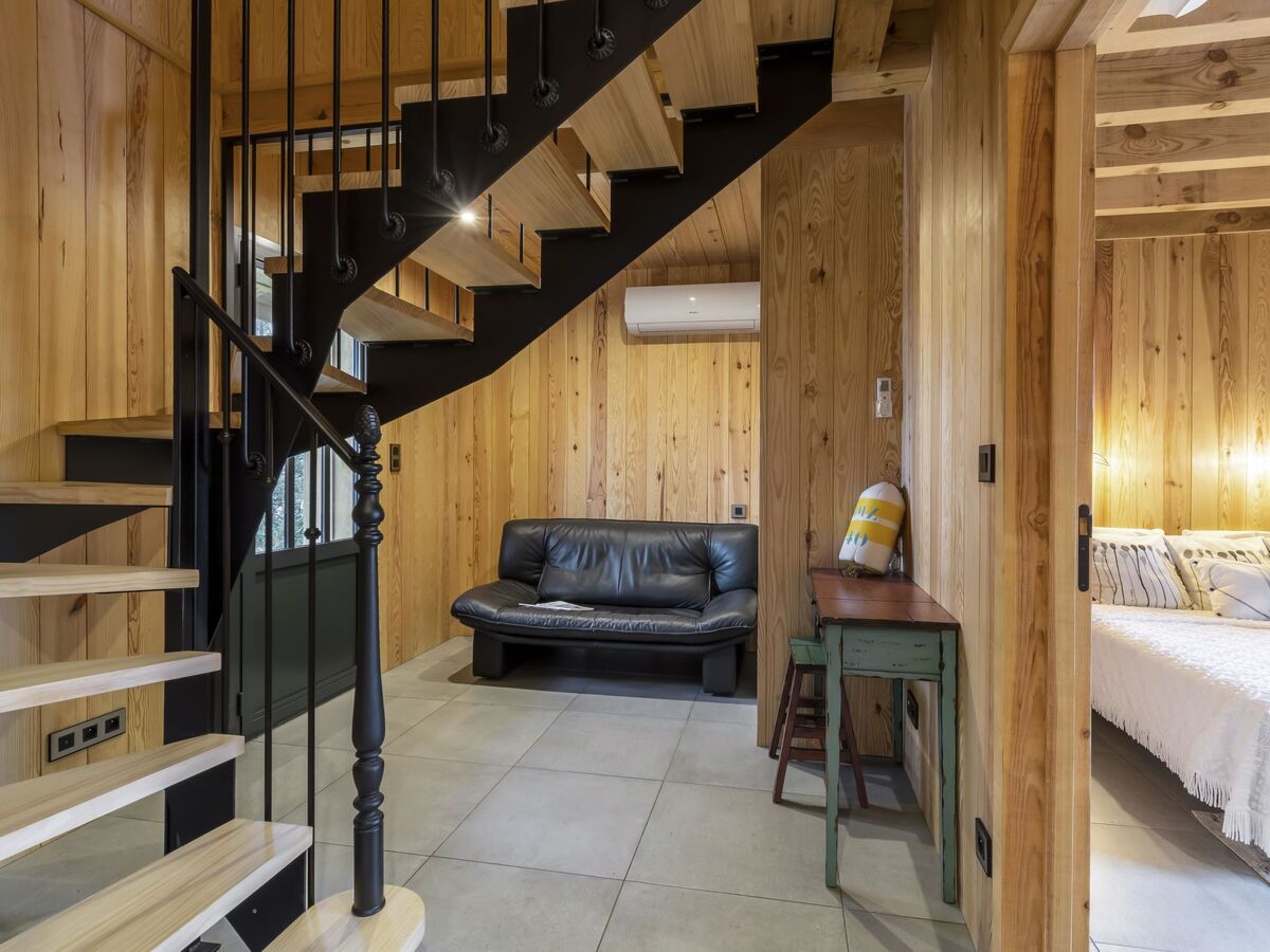 À l'étage supérieur: 1 chambre avec 2 lits (90 cm, longueur 200 cm), air-conditionné.