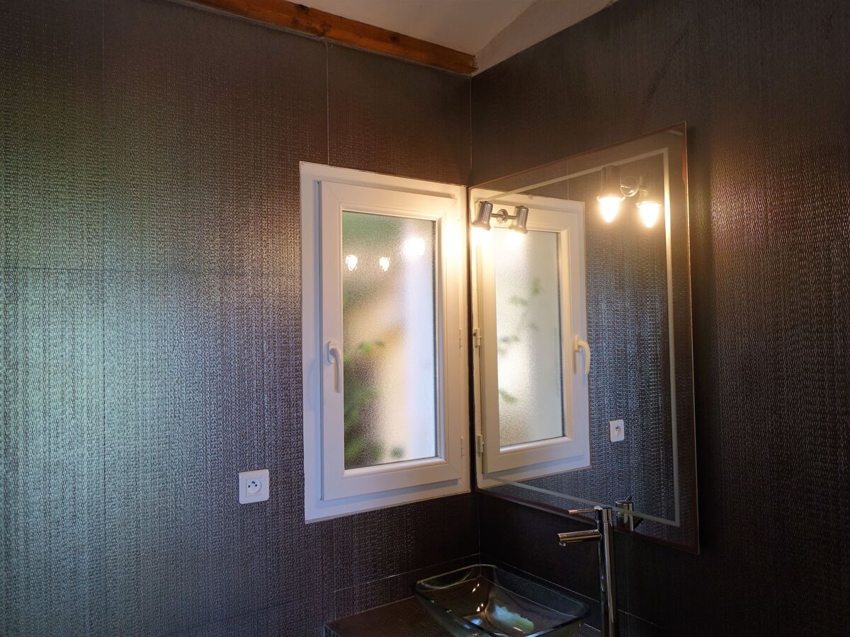 1 chambre avec 2 lits (90 cm, longueur 200 cm), bain/WC.