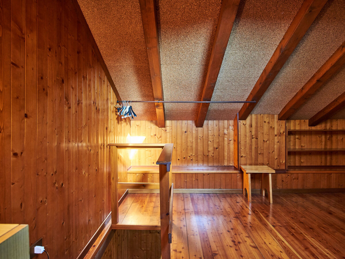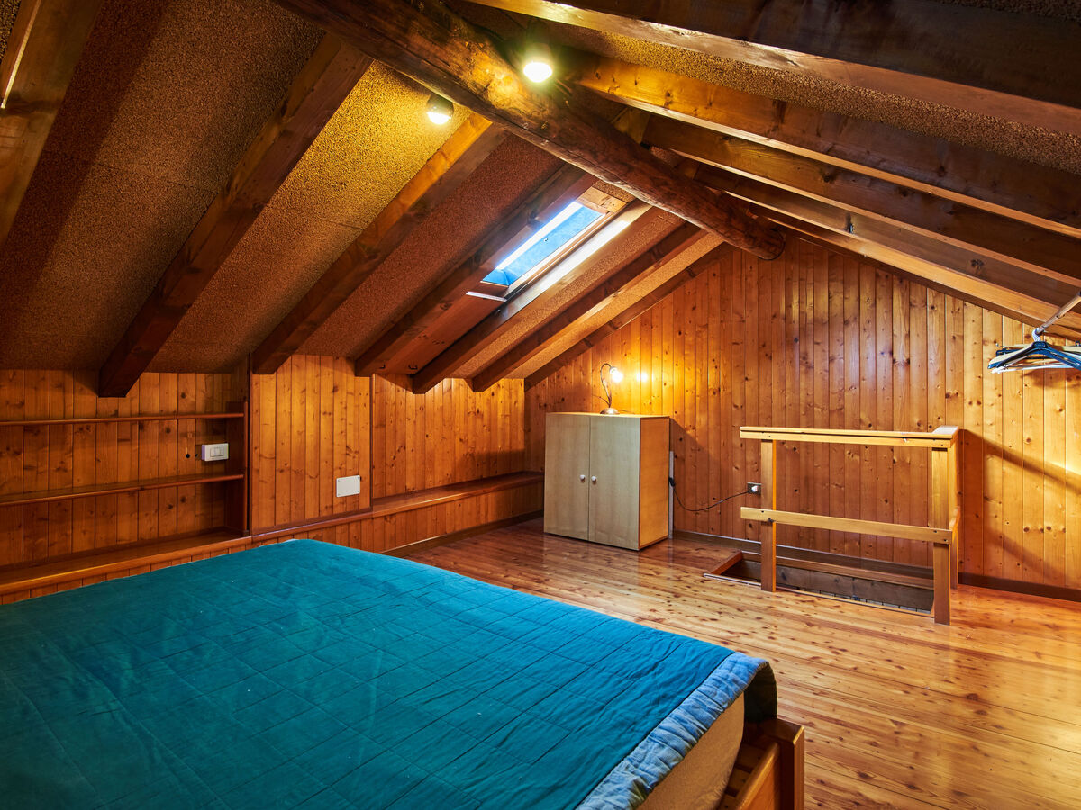 À l'étage supérieur: (escalier raide) mansardé, ouvert 1 chambre double.