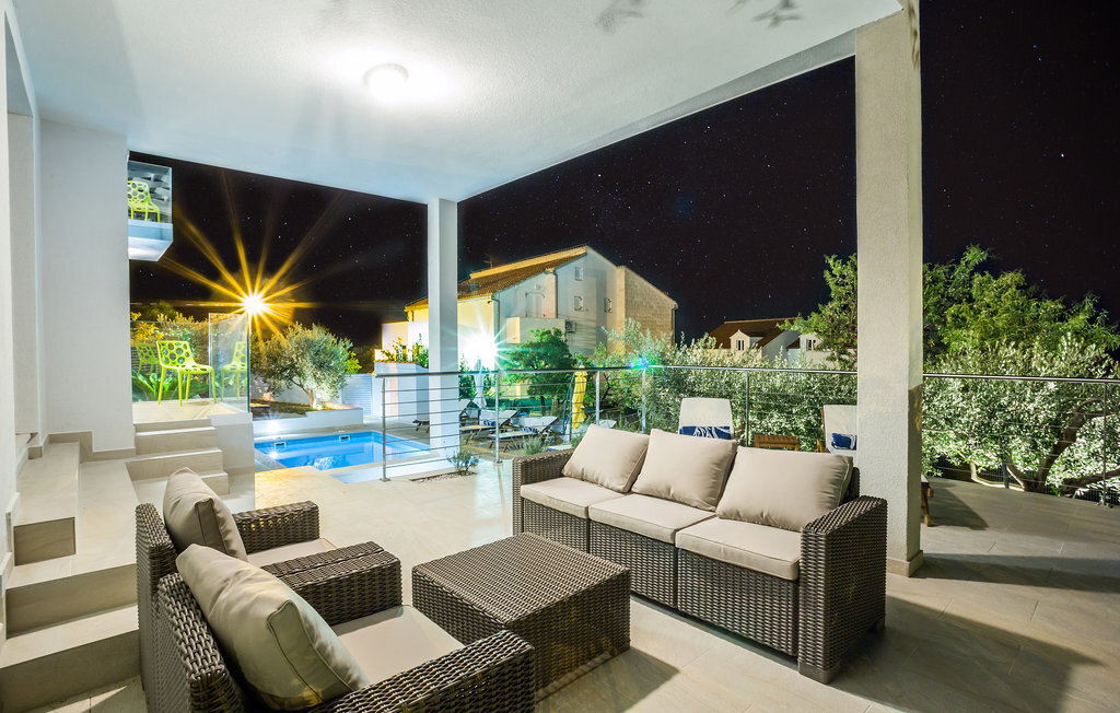 Au sud de l'île de Brac, cette maison de vacances lumineuse et luxueuse avec vue sur la mer vous accueille.