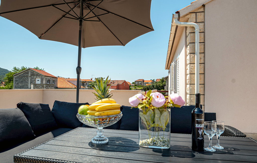 Une courte promenade vous mènera à la mer, si l'envie vous prend de passer une journée à la plage. Vela Luka est située de manière idyllique entre deux montagnes, vous y trouverez, outre de magnifiques plages et baies, de nombreuses possibilités de sport et de loisirs. Au-dessus de la ville, vous pouvez visiter la passionnante grotte Vela Spila.