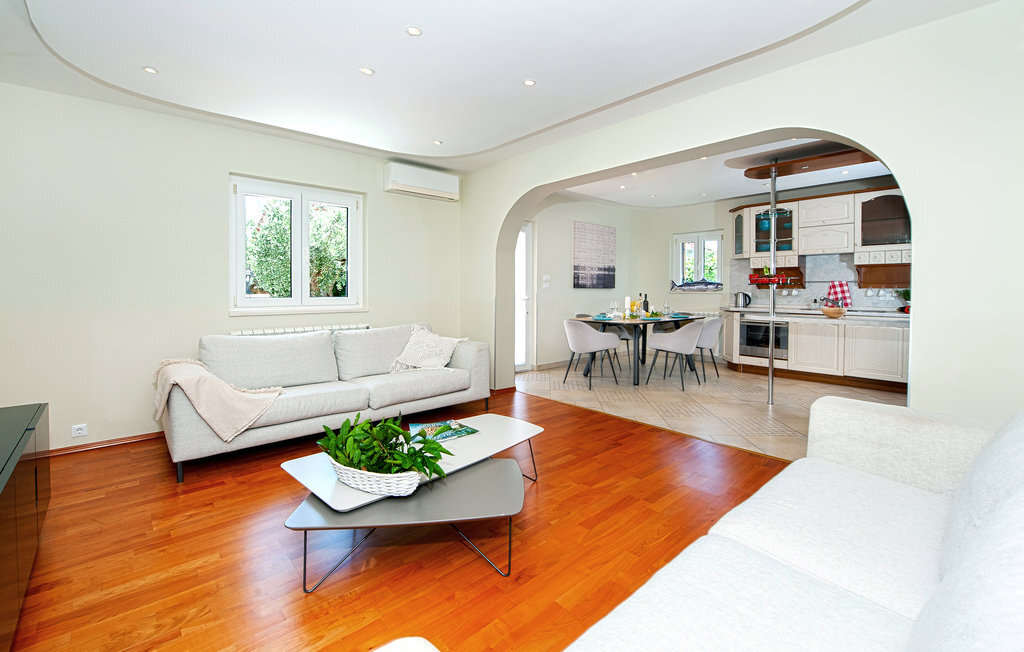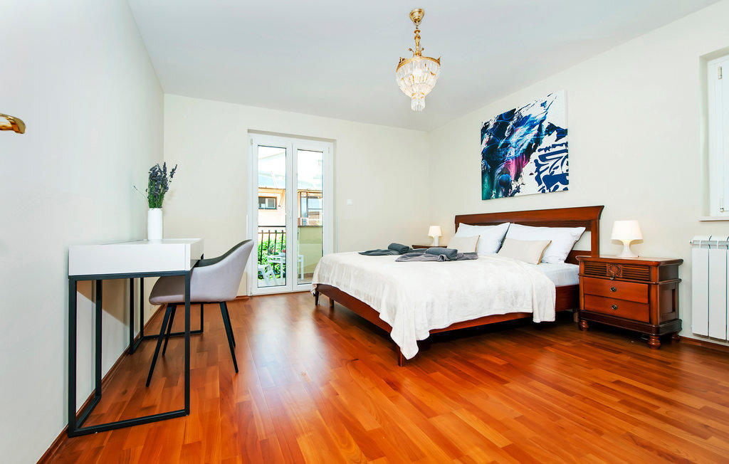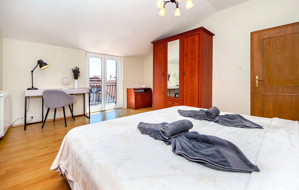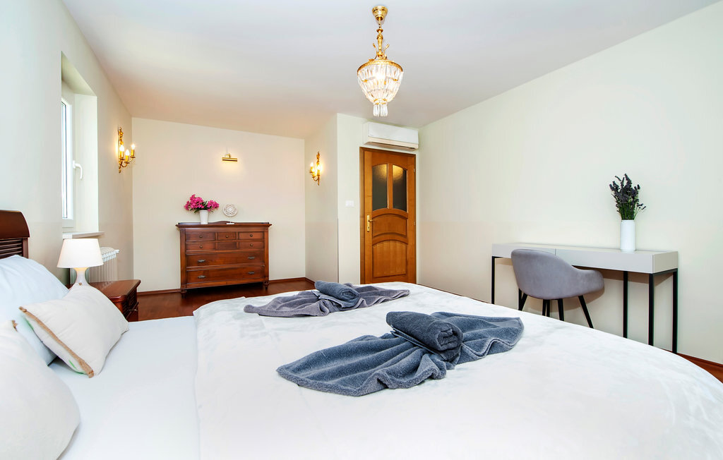 Le logement, beau et spacieux, se trouve sur les trois étages de la maison bien entretenue. Avec votre famille nombreuse ou une famille d'amis, vous pourrez vous y installer confortablement et vous détendre. Profitez de deux appartements séparés et donc de votre intimité. Tous les étages sont confortables et entièrement équipés et vous offrent une atmosphère de bien-être. Alors que vous pouvez lire un bon livre ou prendre le soleil sur les balcons, les joies de la baignade vous attendent dans la piscine. Le jardin est un paradis pour vous et vos enfants, vous pouvez y jouer, vous défouler et déguster de délicieuses grillades sur la terrasse.