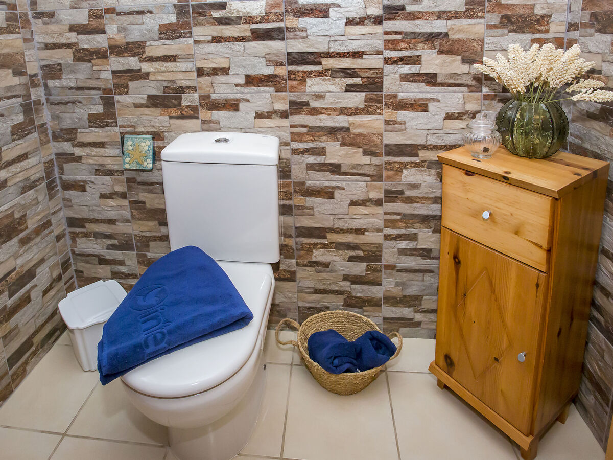 2ème étage: 1 chambre avec 1 grand-lit (180 cm, longueur 200 cm), douche/WC, air-conditionné et chauffage à air chaud.