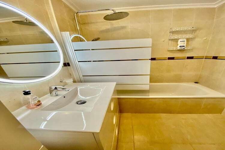 Rez-de-chaussée: (Salle de séjour(TV, table, coin salon), cuisine(foyer, grille-pain, plaque de cuisson, cafetière/percolateur, four, four/micro-onde combinés, réfrigérateur), chambre(lit double), chambre(lit double), salle de bains(baignoire, douche, WC), salle de bains(douche, WC)) balcon, terrasse(20 m2), jardin, mobilier de jardin, piscine(partagé avec d'autres clients)