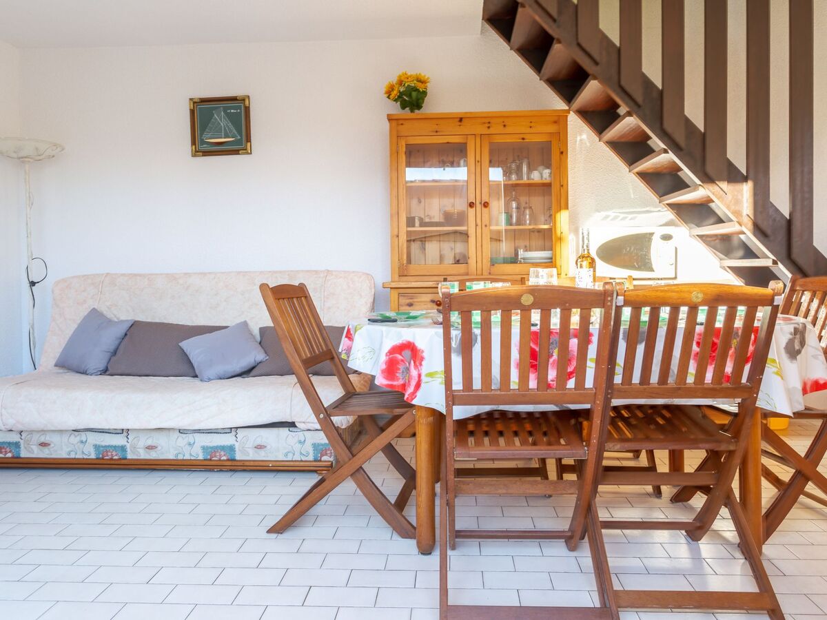 Séjour/salle à manger avec 1 divan-lit double (140 cm, longueur 190 cm), TV (écran plat).