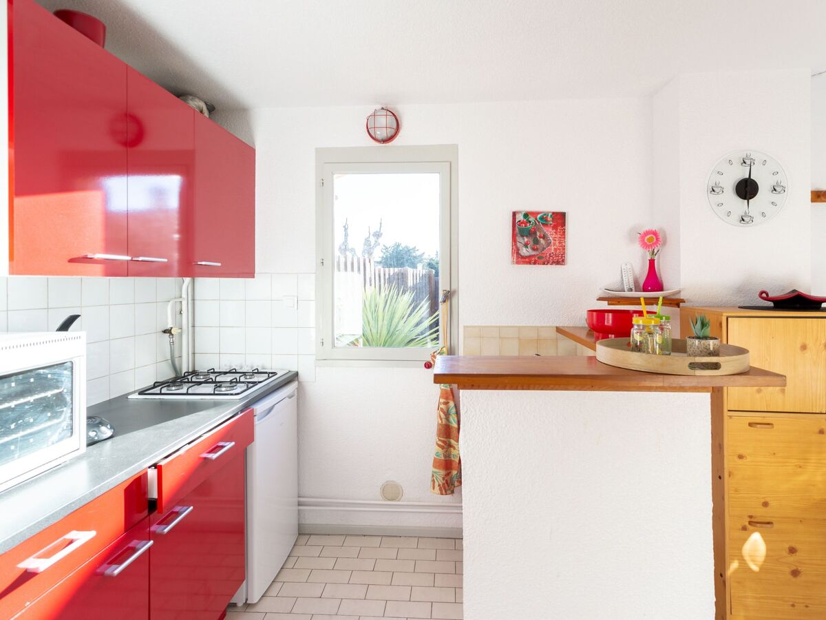 Cuisine ouverte (4 plaques de cuisson, four, bouilloire électrique, micro-ondes, congélateur, cafetière électrique).