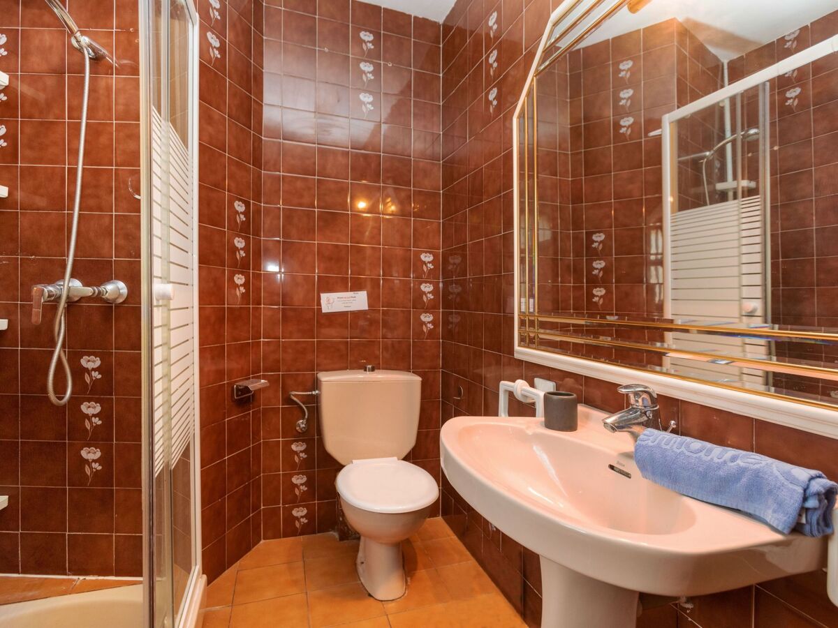 À l'étage supérieur: 1 chambre avec 1 grand-lit (150 cm, longueur 190 cm), douche/WC et ventilateur.