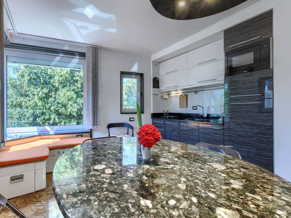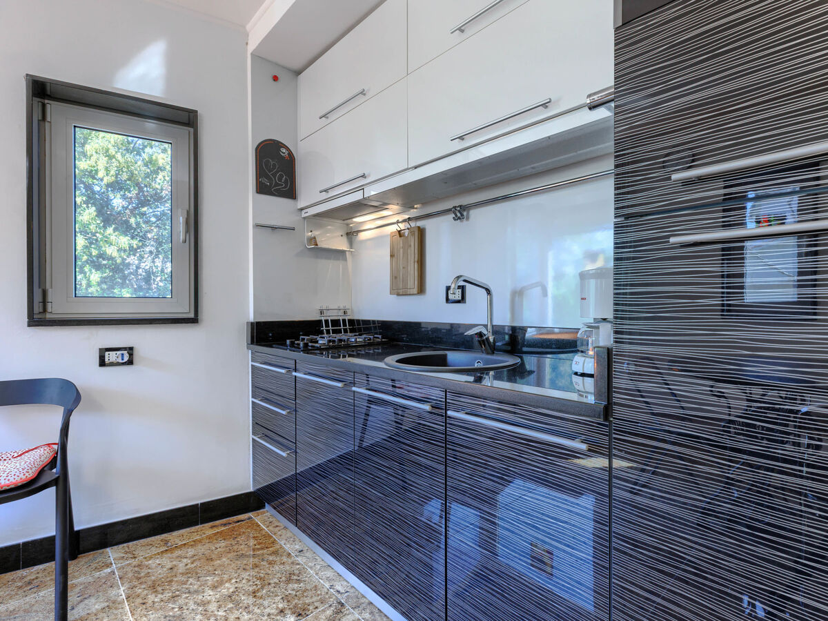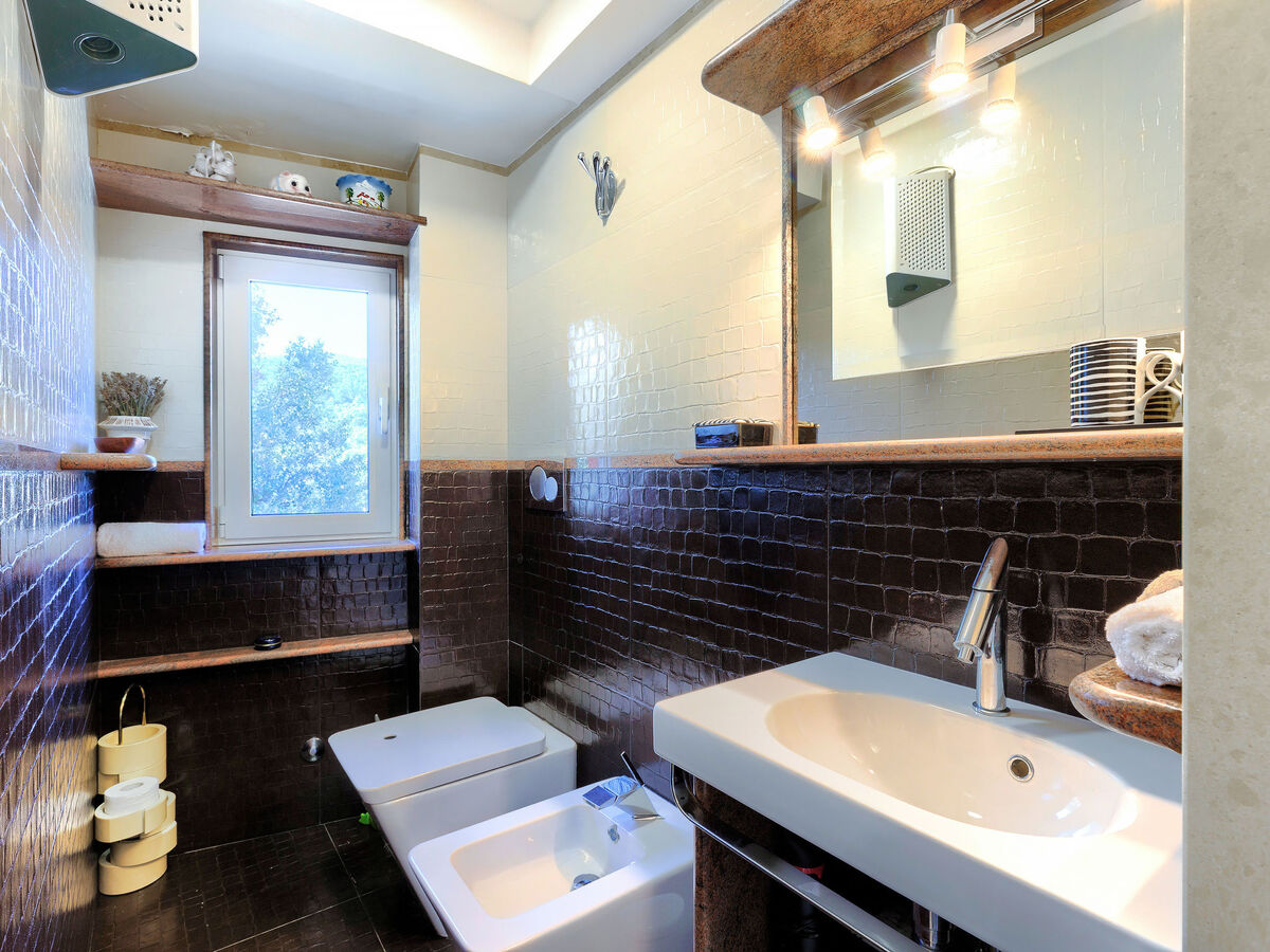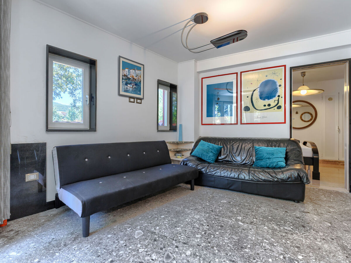 Situation ensoleillée sur un versant, à 80 m de la mer, à 80 m de la plage, dans la verdure.