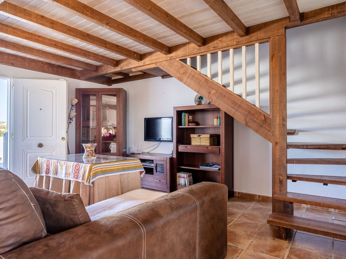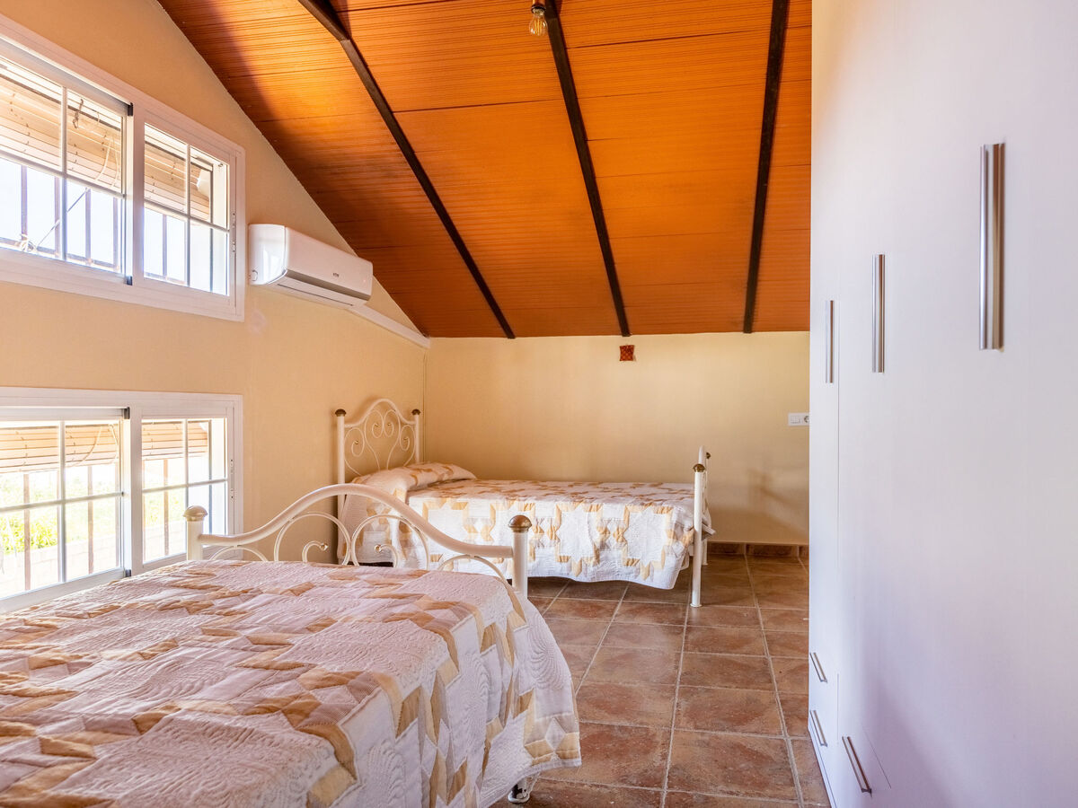 À l'étage supérieur: 1 chambre avec 1 grand-lit (135 cm, longueur 190 cm), air-conditionné et chauffage à air chaud.