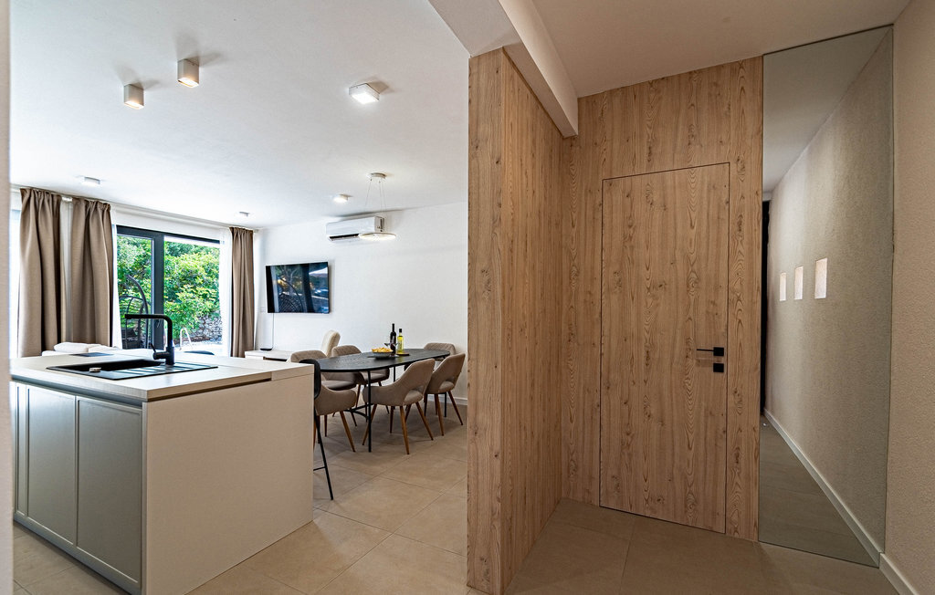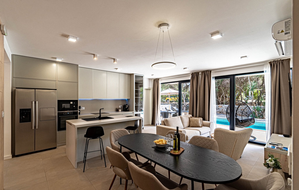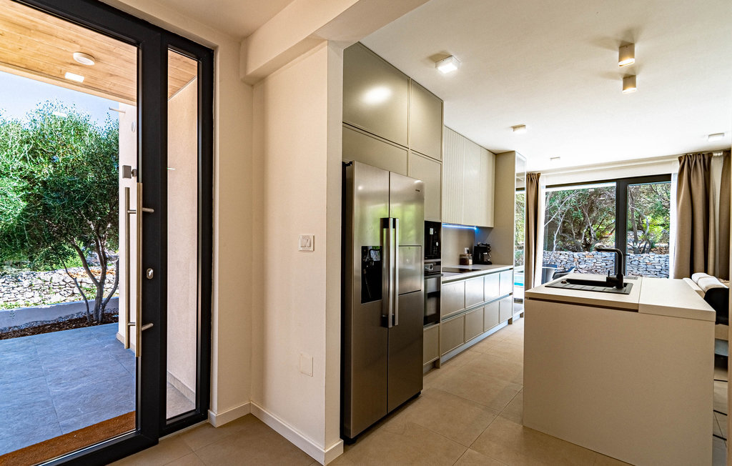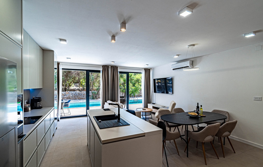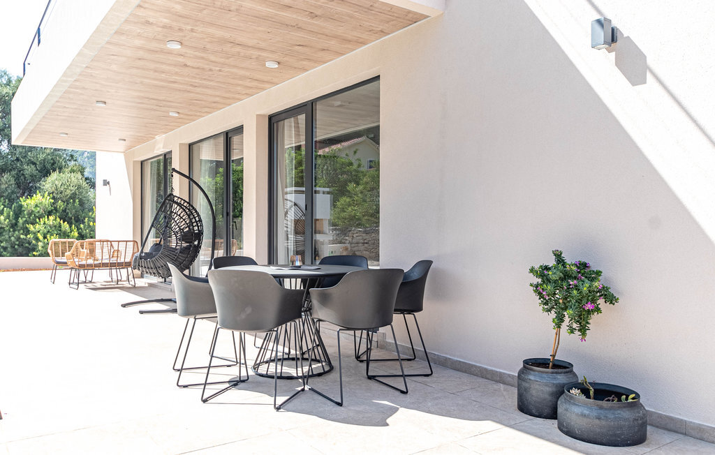 Non loin de la plage de galets de Prizba, cette magnifique villa moderne vous accueille sur les hauteurs d'une petite presqu'île. Cette confortable location de vacances est le logement idéal pour vous et votre famille, qui privilégiez un mobilier de qualité et des espaces décoratifs pendant vos vacances. L'intérieur de la maison est décoré dans des couleurs claires, créant ainsi une délicieuse atmosphère de bien-être dans laquelle vous aimerez cuisiner, manger, jouer et vous détendre.