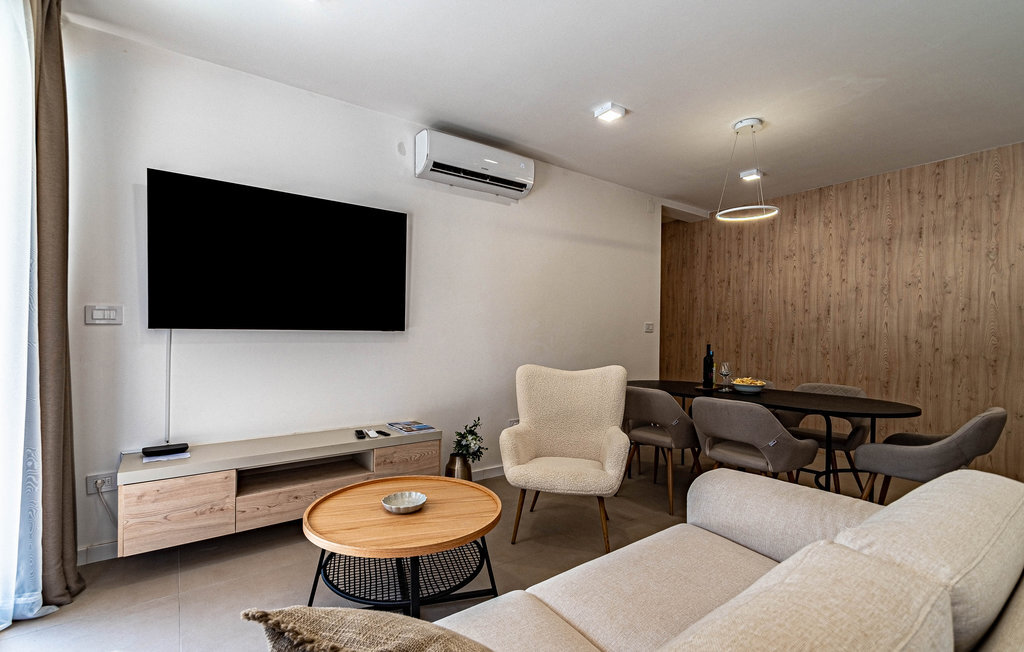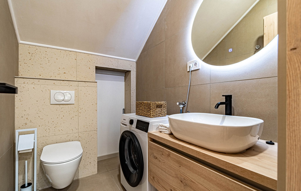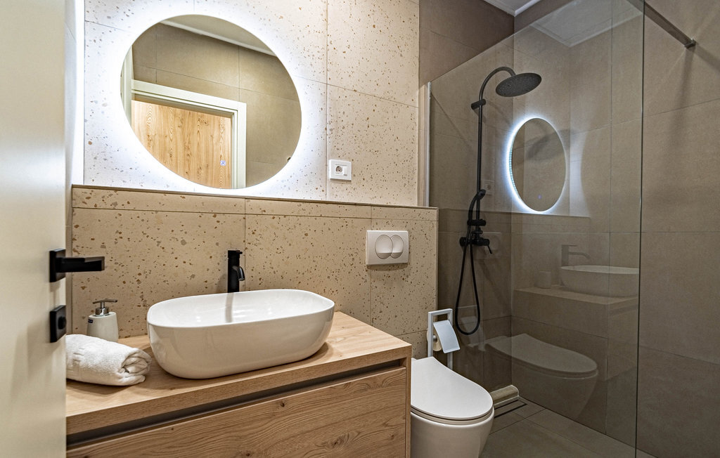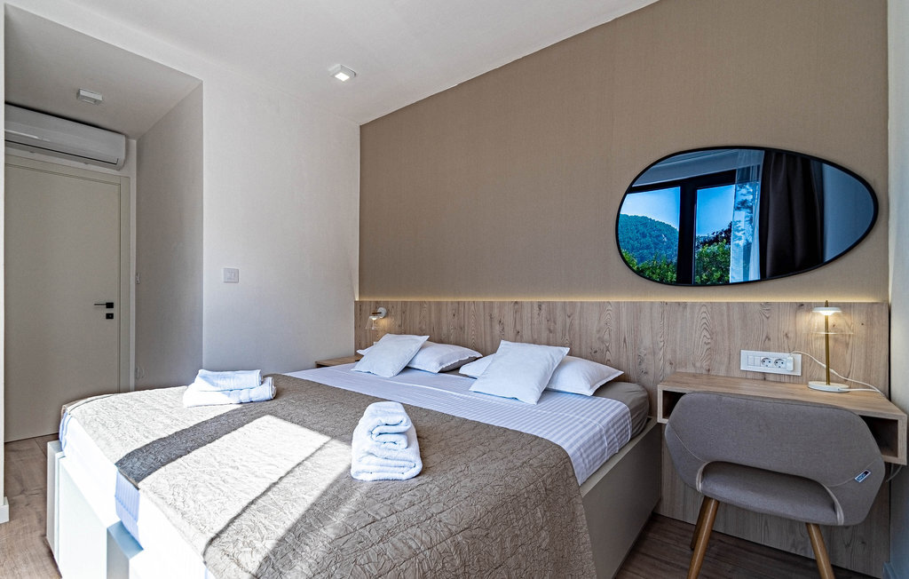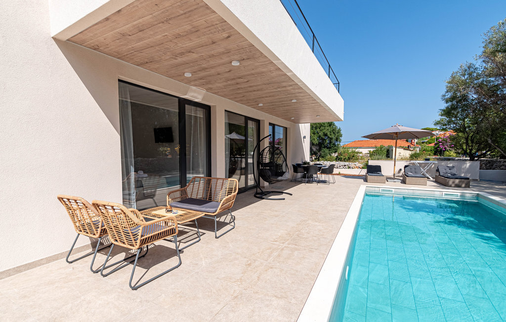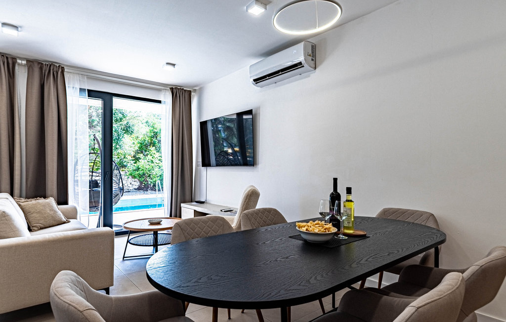 Non loin de la plage de galets de Prizba, cette magnifique villa moderne vous accueille sur les hauteurs d'une petite presqu'île. Cette confortable location de vacances est le logement idéal pour vous et votre famille, qui privilégiez un mobilier de qualité et des espaces décoratifs pendant vos vacances. L'intérieur de la maison est décoré dans des couleurs claires, créant ainsi une délicieuse atmosphère de bien-être dans laquelle vous aimerez cuisiner, manger, jouer et vous détendre.