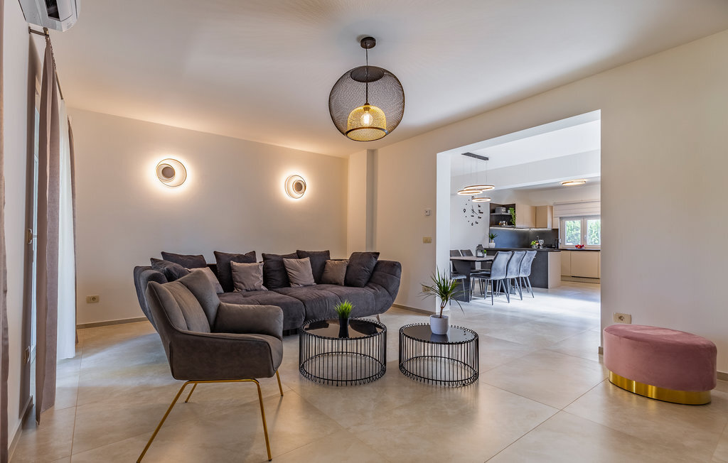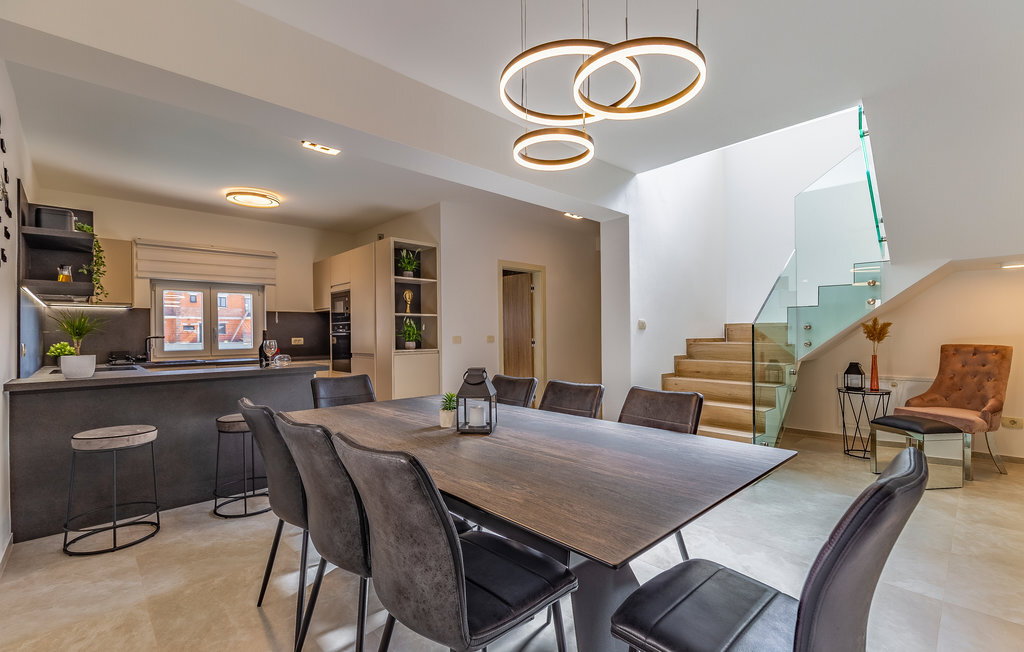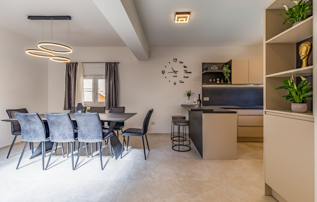 Bienvenue dans cette maison confortable qui vous attend à une courte distance de la mer, profitez ici à la fois de la beauté du paysage istrien et de la proximité de la côte. L'aménagement moderne et l'espace pour la grande famille forment le cadre d'une pause réussie. Détendez-vous dans une ambiance élégante, prenez vos repas ensemble autour de la longue table à manger et installez-vous confortablement sur le canapé après une journée bien remplie, peut-être en regardant un bon film.