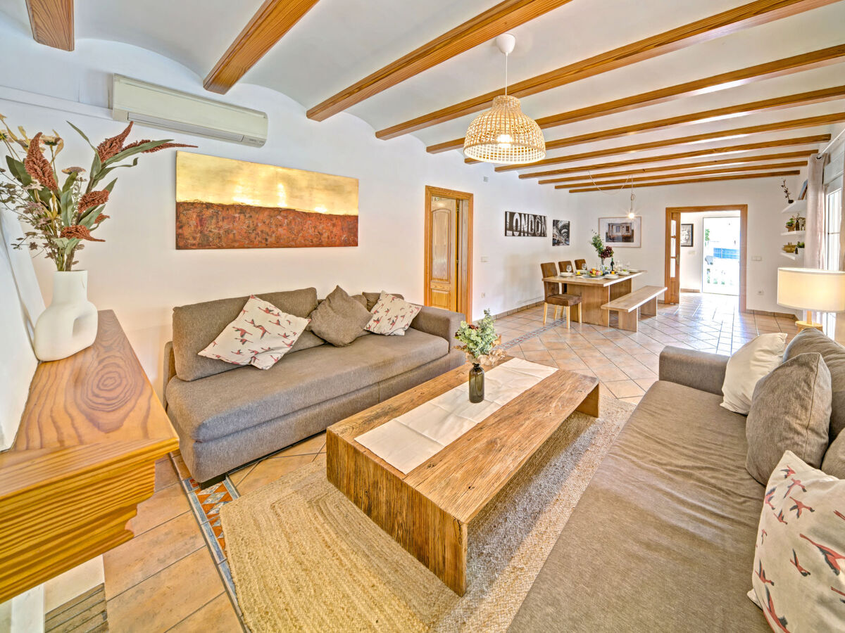 Dans la localité, à 3 km du centre de Moraira, en bordure de la localité, à 9 km du centre de Calpe, situation tranquille, à 750 m de la mer, à 2.6 km de la plage.