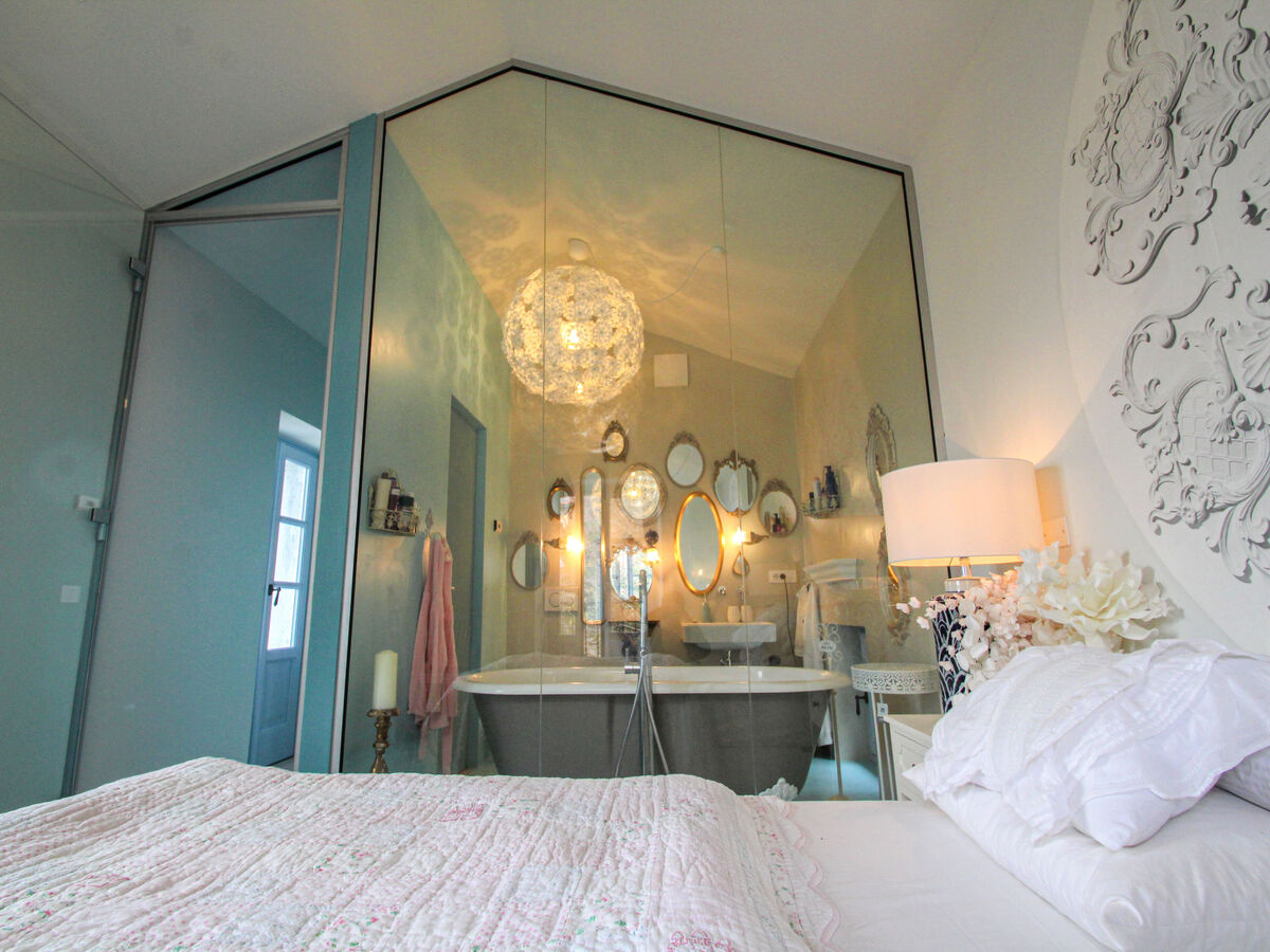À l'étage supérieur: 1 chambre double, sans armoire avec bain/bidet/WC.