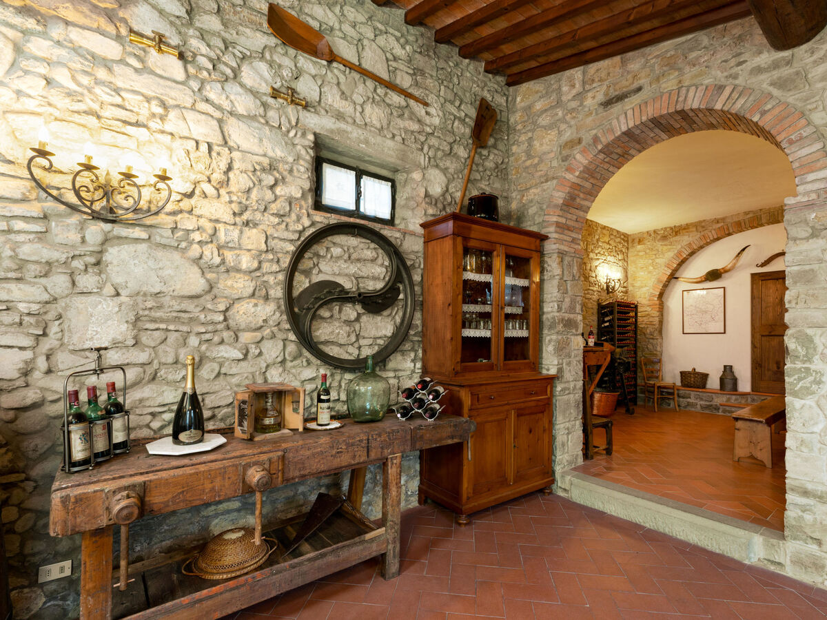 Attractions à proximité: Panzano in Chianti 5 km, Radda in Chianti 19 km, Firenze 35 km, San Gimignano 38 km, Siena 46 km.