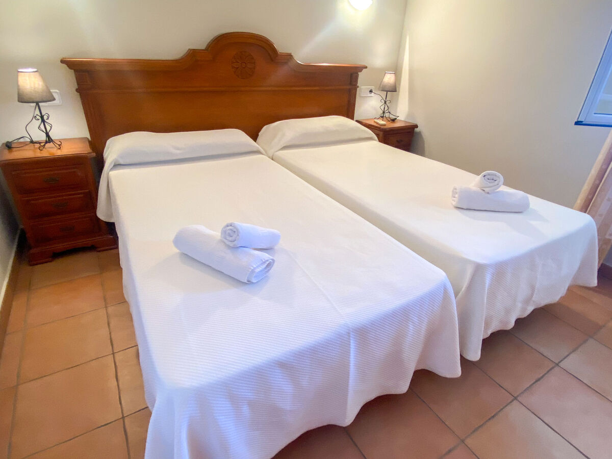 1 chambre avec 2 lits (90 cm), air-conditionné et chauffage à air chaud.