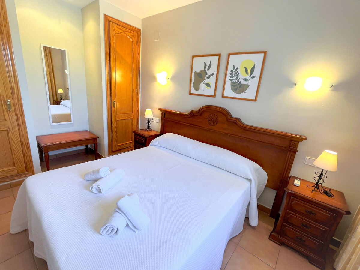 1 chambre avec 1 grand-lit (140 cm), air-conditionné et chauffage à air chaud.