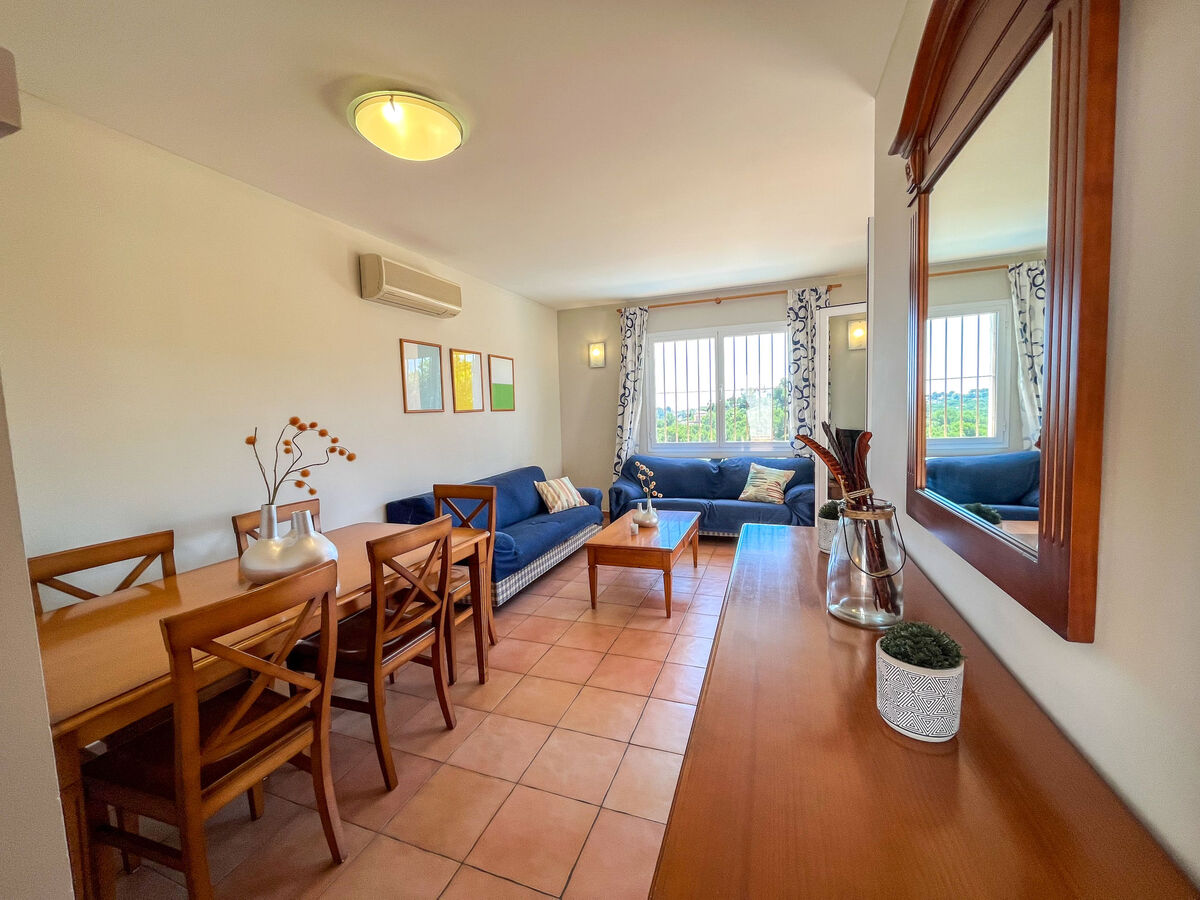 Clair, aménagement confortable: séjour/salle à manger avec TV et TV (satellite) (écran plat), air-conditionné et chauffage à air chaud.