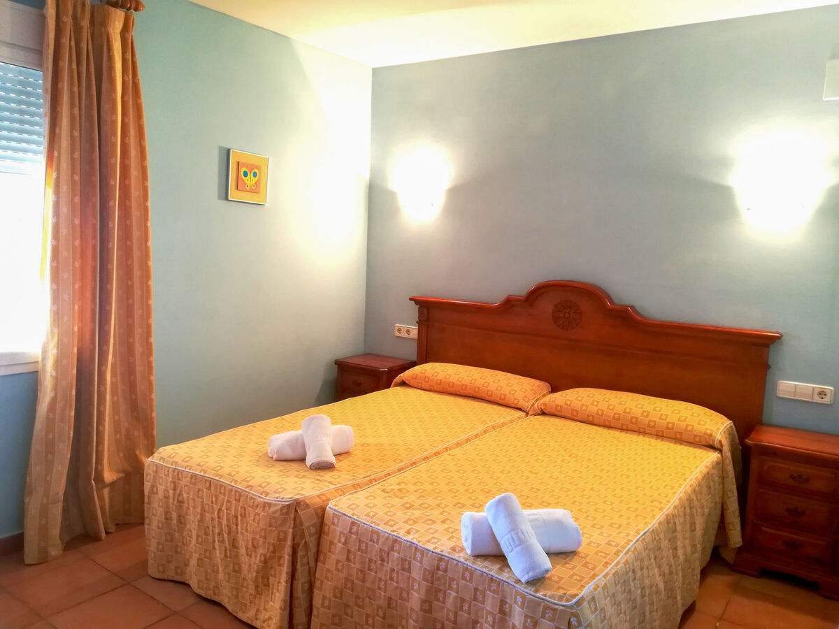 1 chambre avec 2 lits (90 cm), air-conditionné et chauffage à air chaud.