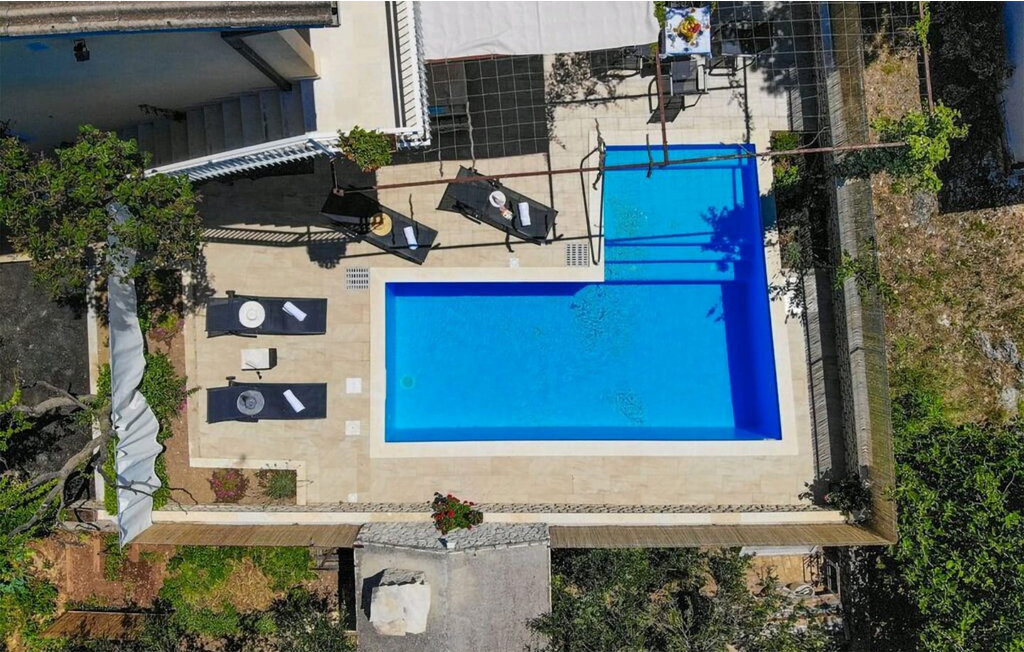 Bien-être à l'extérieur : Location de vacances disposant de chaises-longues et d'un ou plusieurs équipements tels que piscine extérieure, jacuzzi extérieur, lit à baldaquin de jardin etc...