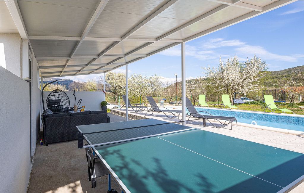 Activités de plein air : Cette location de vacances propose au moins 3 activités de plein air pour toute la famille comme par exemple une table de ping-pong, un trampoline, des boules de pétanques, un panier de basket avec son ballon etc...