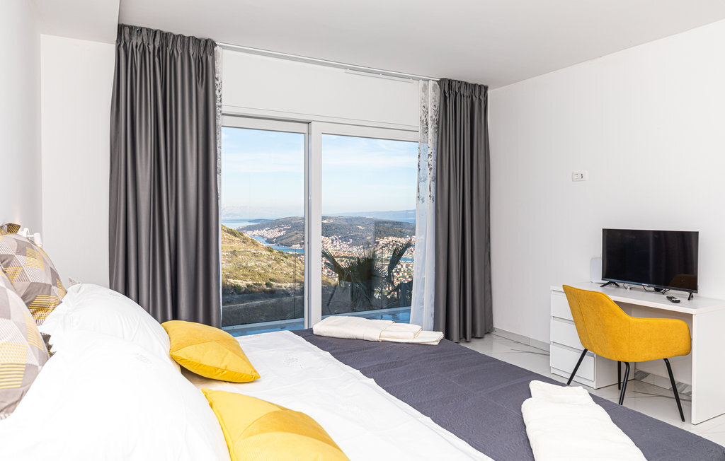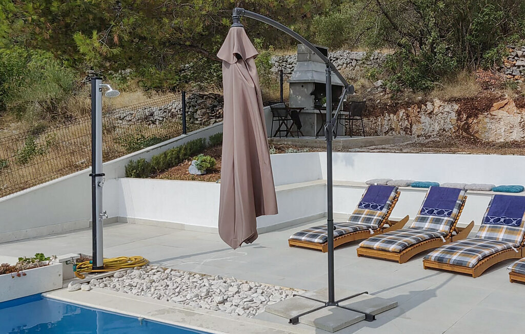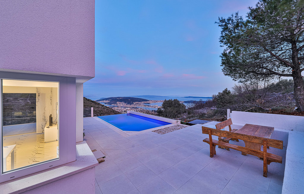 L'espace extérieur attrayant de la maison offre les meilleures possibilités de passer de bons moments en plein air. Profitez à votre guise du soleil sur différentes terrasses avec des rafraîchissements occasionnels dans la piscine. Ici aussi, la vue sur Trogir et la mer vous enchantera. Préparez de délicieux plats sur le barbecue et terminez la journée par un dîner en plein air.