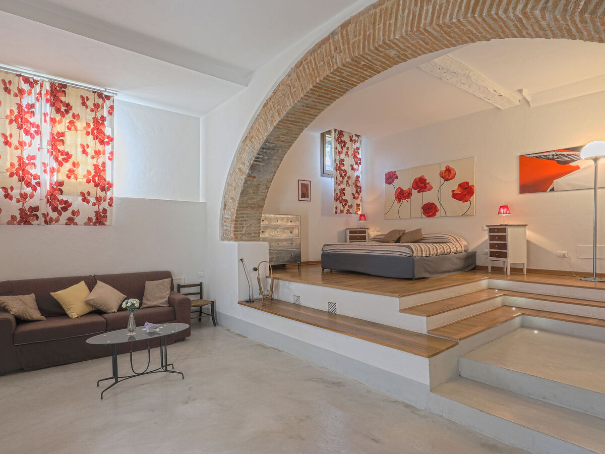 À l'étage supérieur: Studio avec 1 lit double, table pour les repas, coin-cuisine, douche/bidet/WC, TV et chaînes de TV internationales (écran plat).