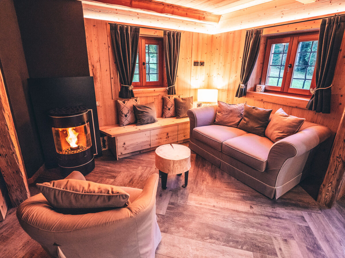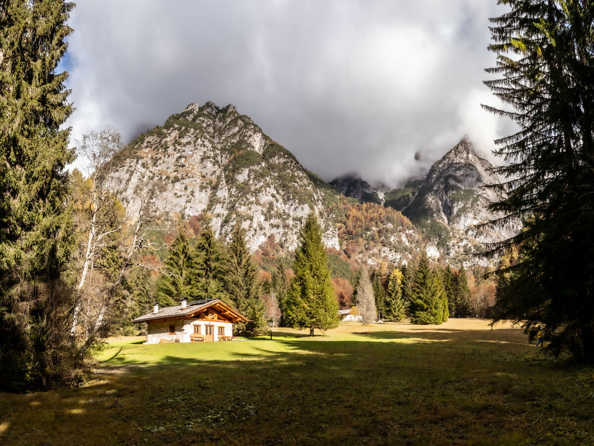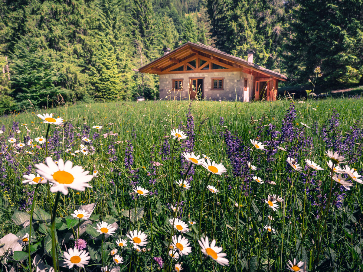 Val d'Algone: Beau chalet rustique "Baita Valon Alpine Hideaway", 1'100 m au dessus du niveau de la mer, de 2 étages, renové en 2019, environné par les arbres et prés.