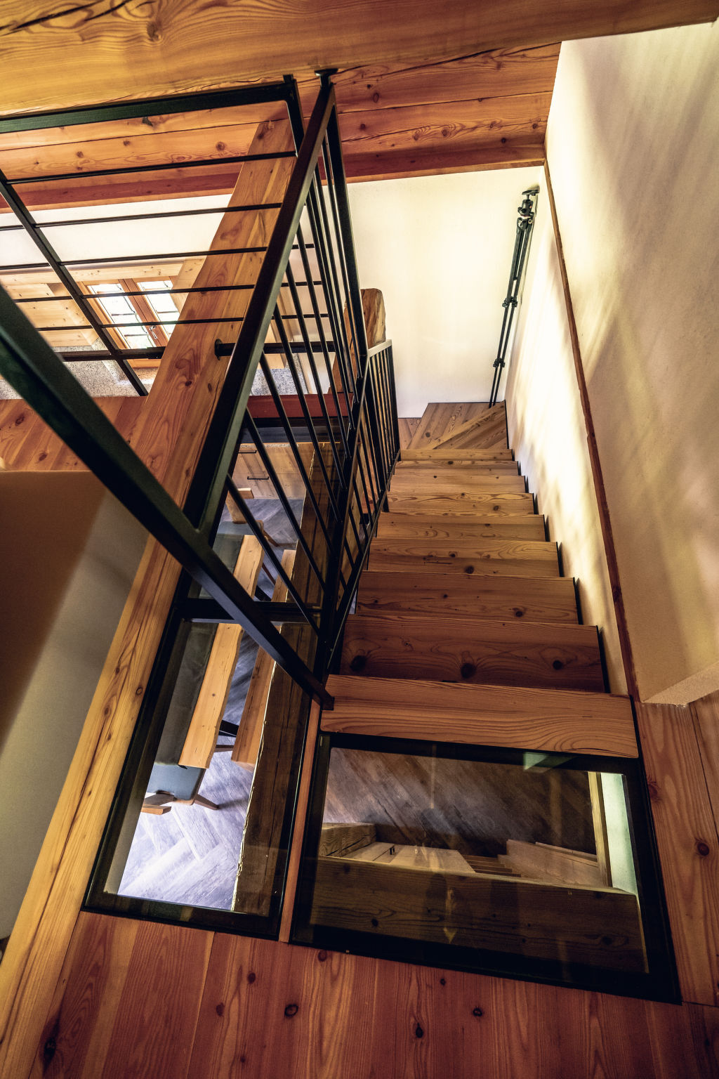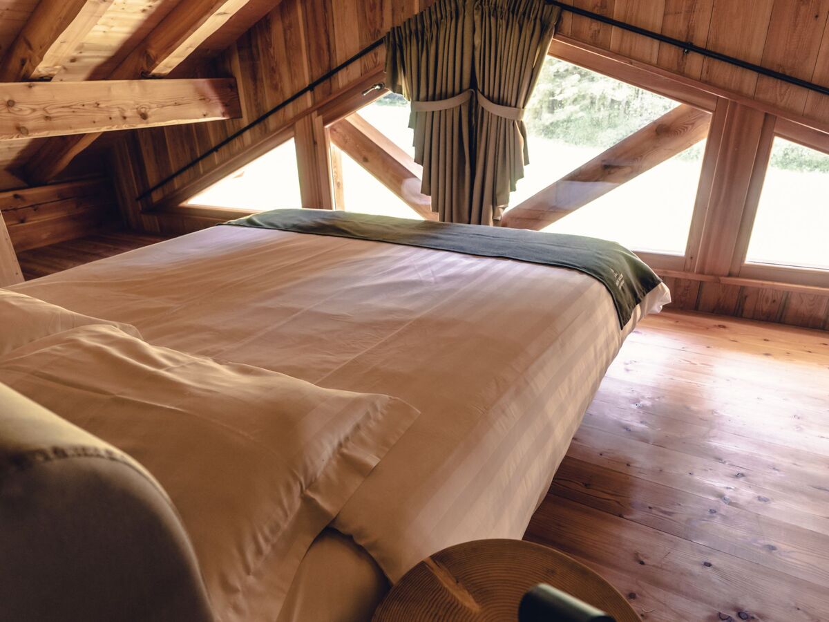 À l'étage supérieur: grande galerie mansardée, ouverte avec 1 grand-lit (140 cm), 1 lit double (220 cm).