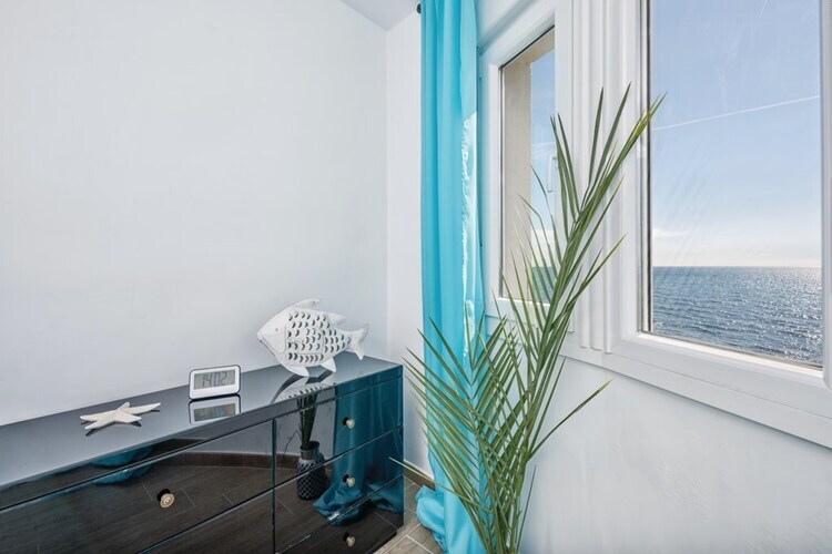 L'appartement dispose de 2 chambres avec lits doubles, 1 salle de bain avec douche à l'italienne, cuisine avec îlot ouvert sur le séjour, et une terrasse. Toutes les chambres avec vue sur la mer.