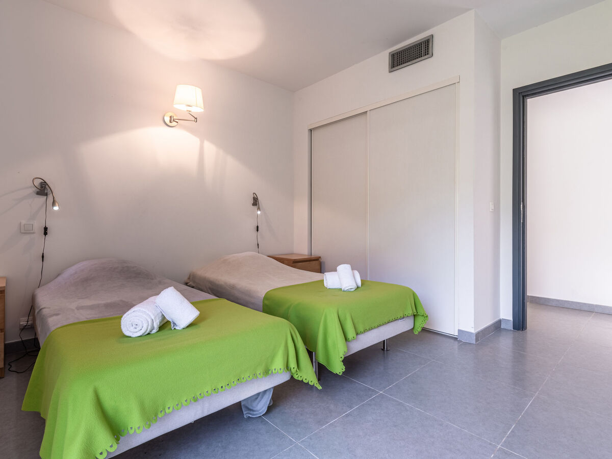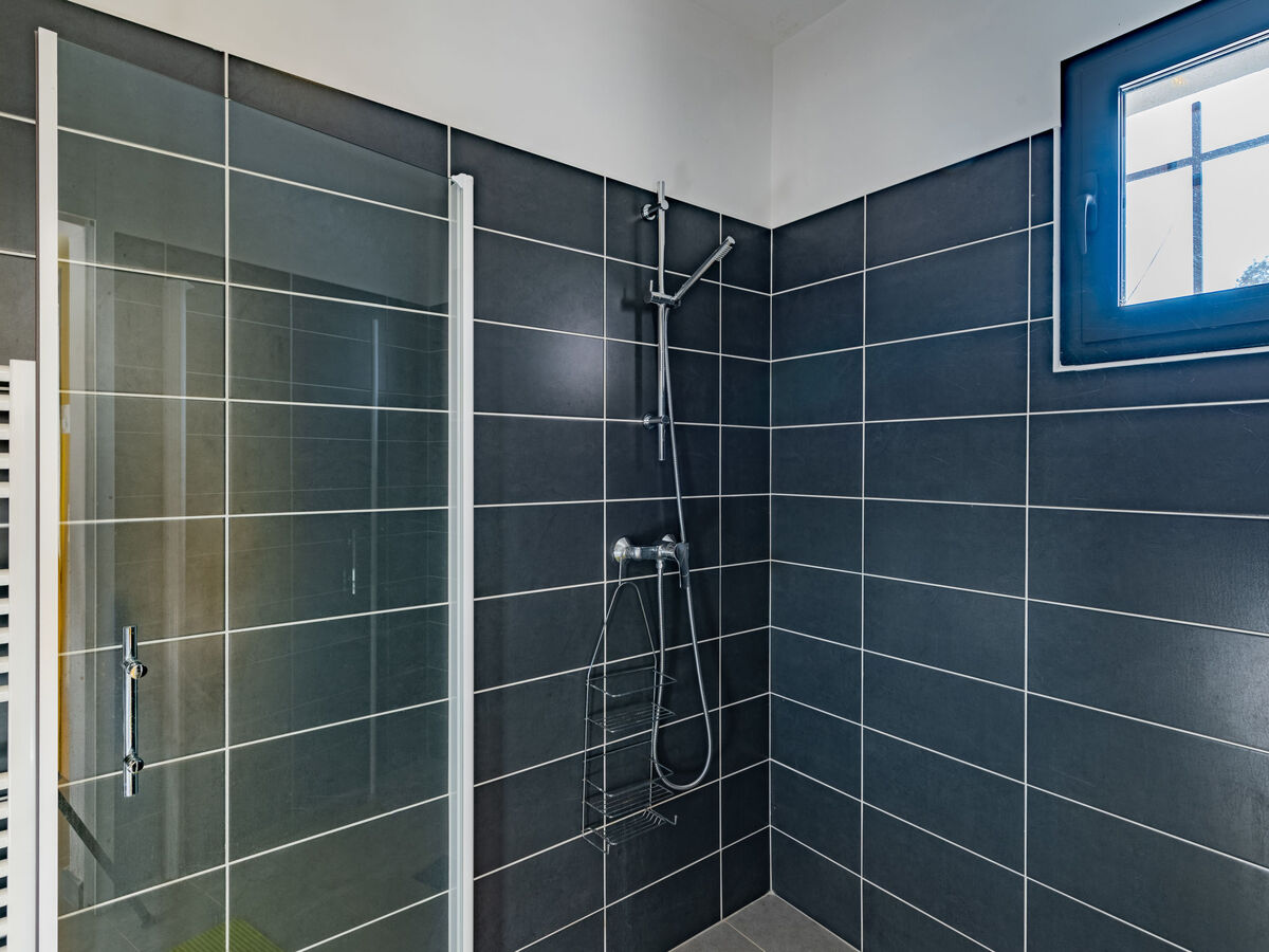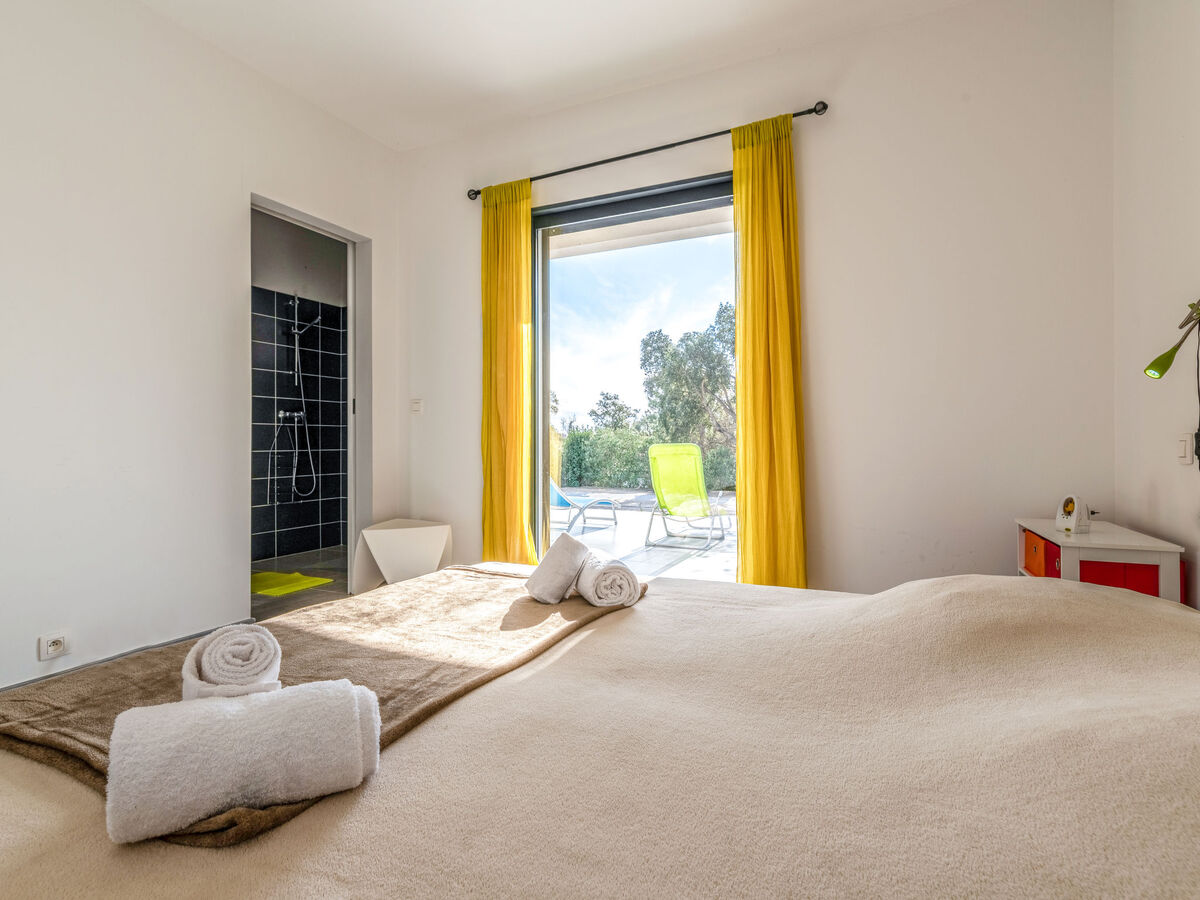3 chambres avec baie vitrée, chaque chambre avec: 1 lit double (160 cm, longueur 190 cm), bain/douche.