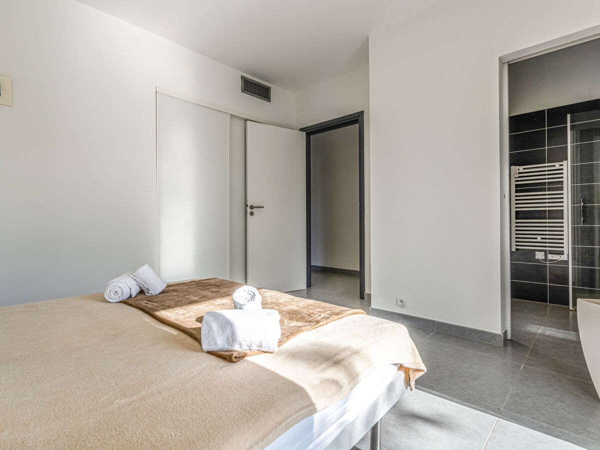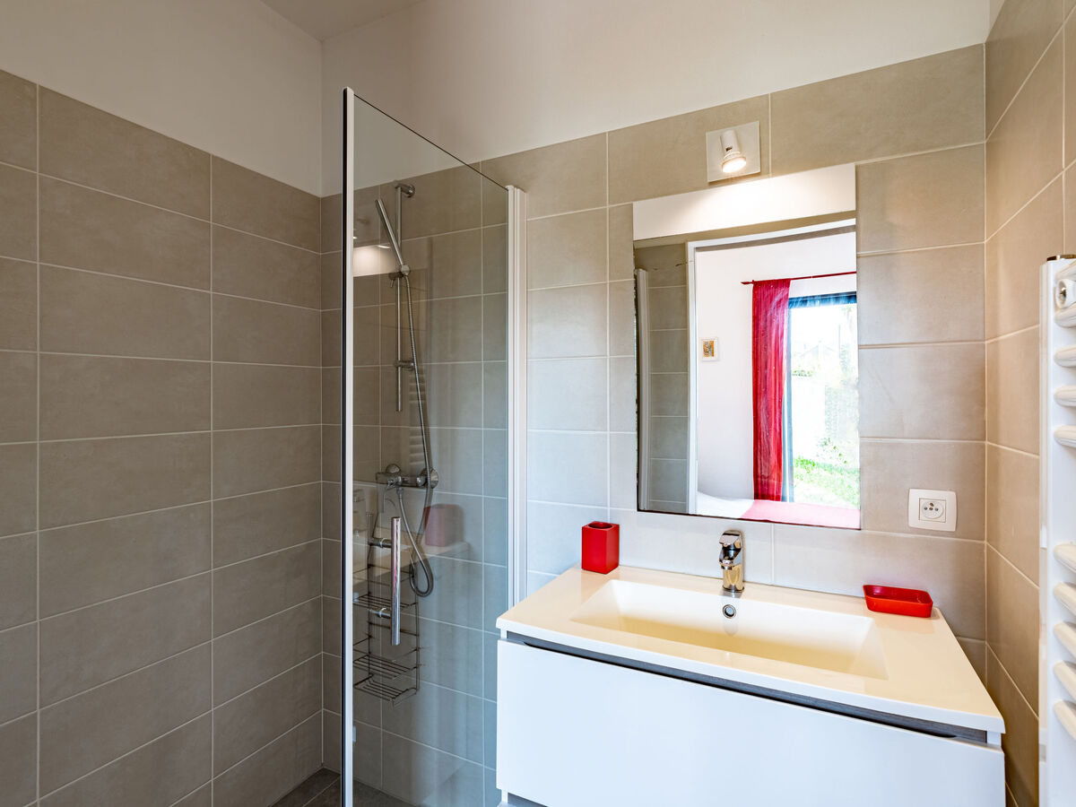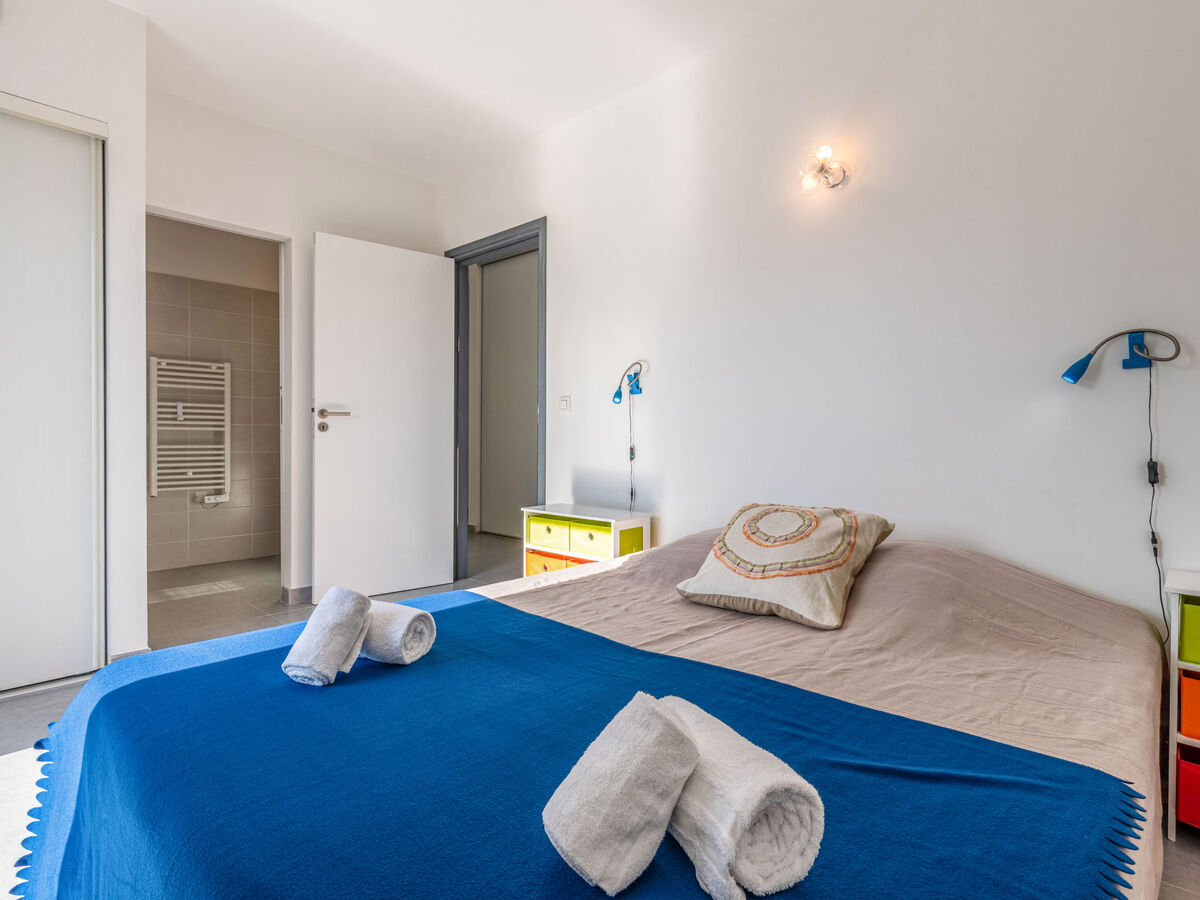 3 chambres avec baie vitrée, chaque chambre avec: 1 lit double (160 cm, longueur 190 cm), bain/douche.
