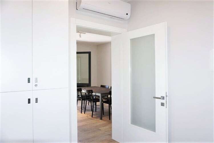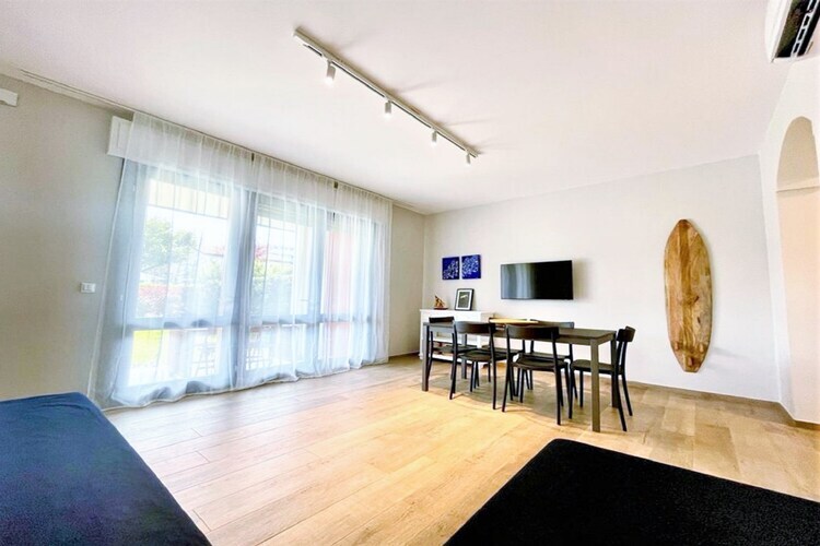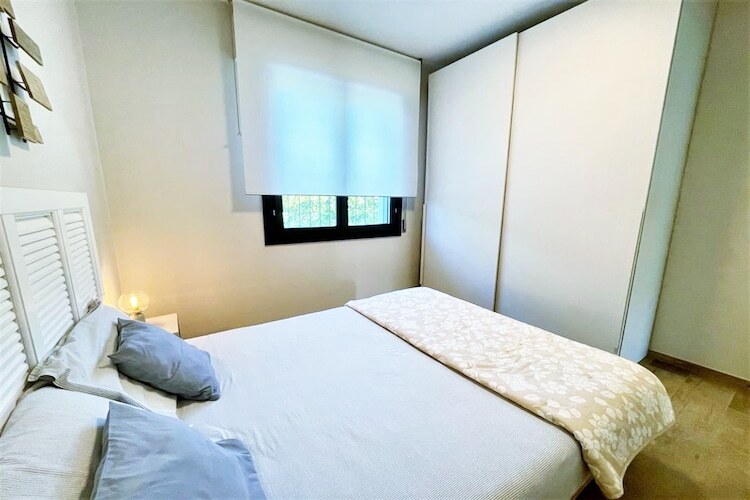 L'intérieur de la villa comprend un séjour lumineux et accueillant avec un canapé-lit, une télévision et une table à manger, une cuisine entièrement équipée, deux chambres doubles confortables et une salle de bain fonctionnelle conçue pour un quotidien sans tracas. Des équipements bien pensés, tels qu'un parking et la climatisation, créent une atmosphère détendue et agréable, idéale pour se relaxer après une journée à la plage ou à explorer les environs.