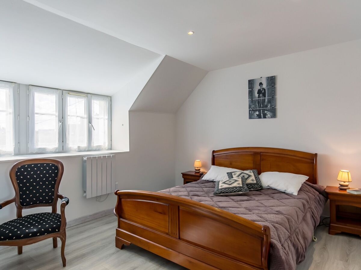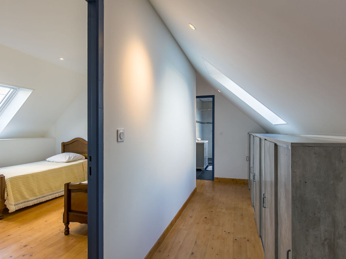 À l'étage supérieur: 1 chambre avec 1 grand-lit (160 cm, longueur 200 cm).