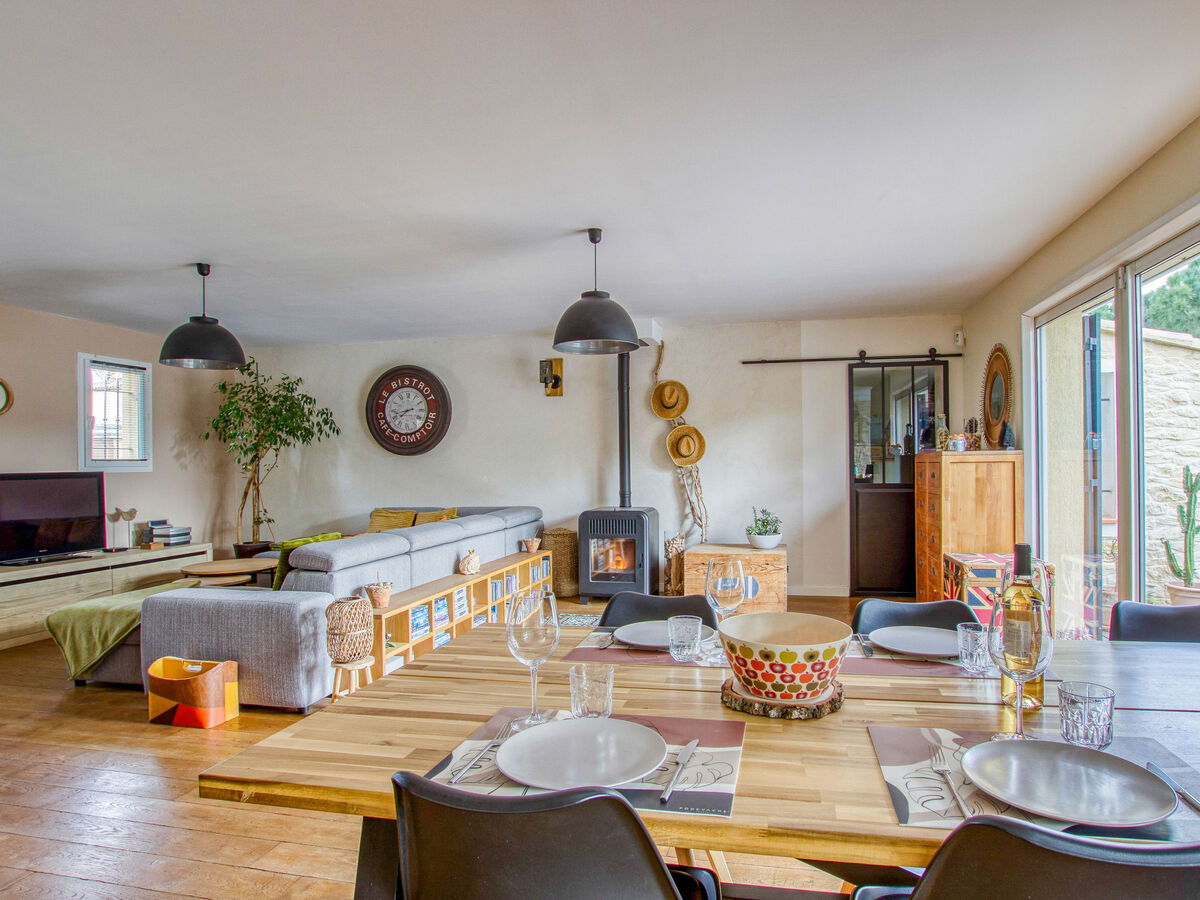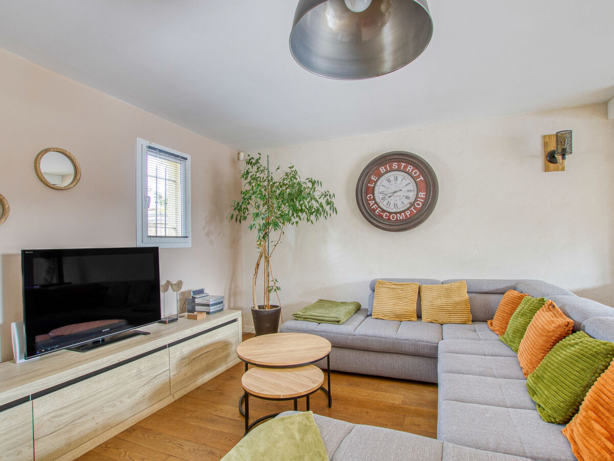 Spacieux et clair, aménagement confortable et agréable: séjour/salle à manger avec table pour les repas et TV (écran plat).