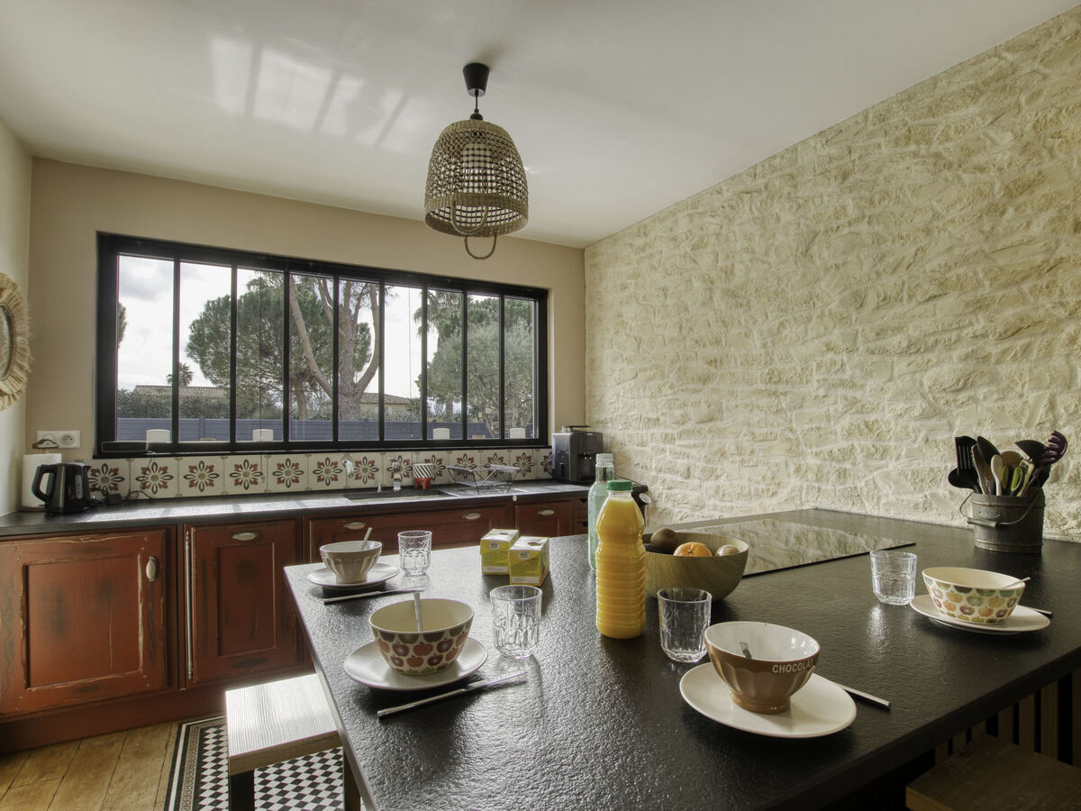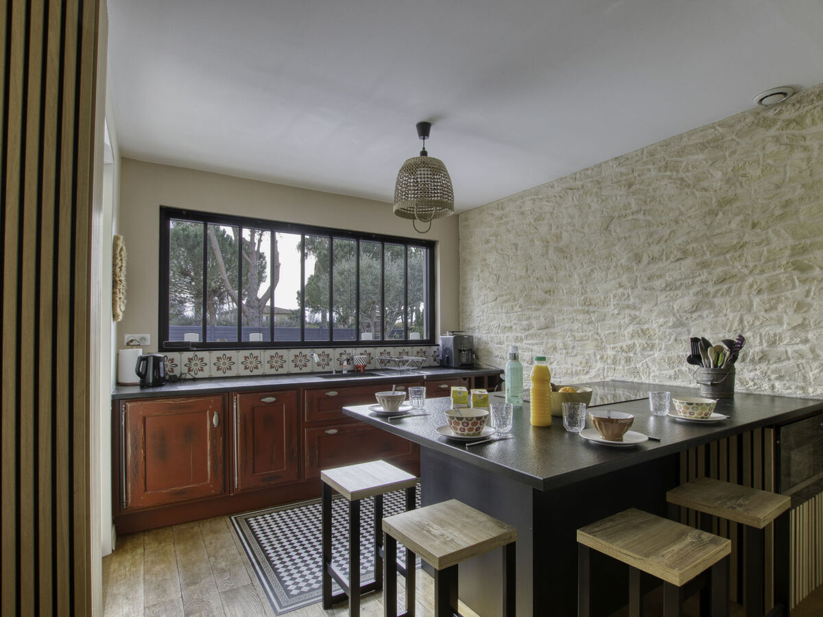 Cuisine ouverte (four, lave-vaisselle, 3 plaques à induction, grille-pain, bouilloire électrique, micro-ondes, congélateur, cafetière électrique, Capsules pour machine à café (Nespresso) (NON INCLUSES)).