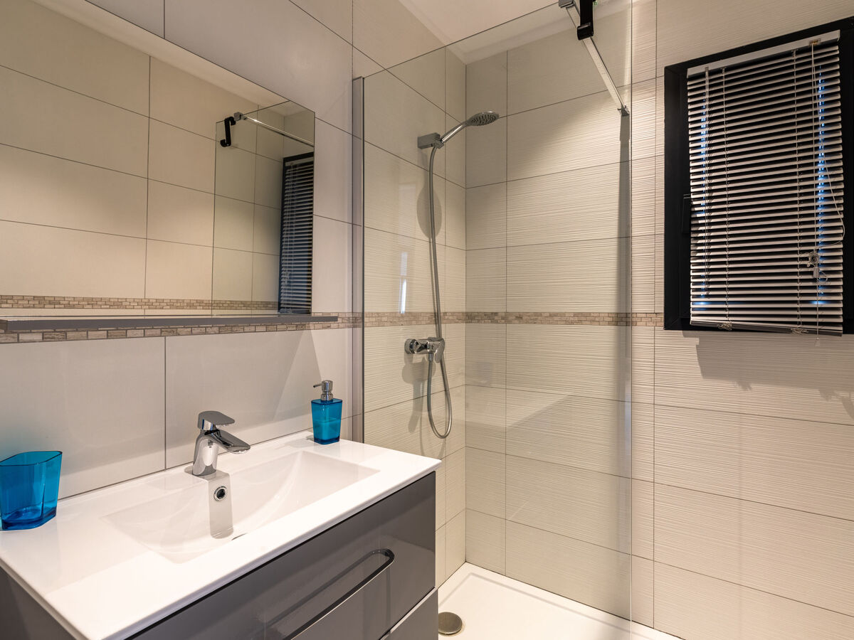 1 chambre avec 1 grand-lit (140 cm, longueur 190 cm), douche/WC et TV (écran plat).