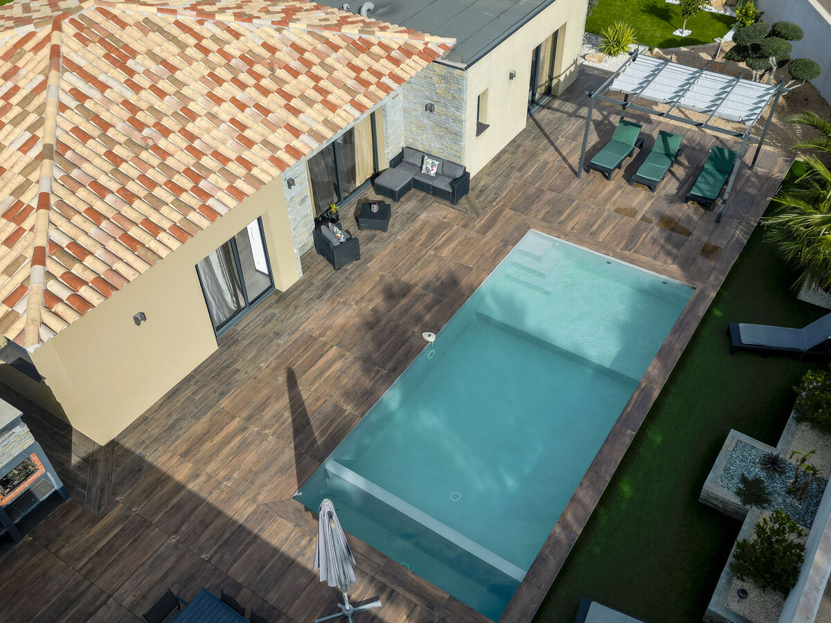 A usage privé: terrain 800 m2 (clôturé), jardin entretenu, piscine rectangulaire (7 x 4 m, profondeur 100 - 200 cm, disponibilité saisonnière: 01.Jul.