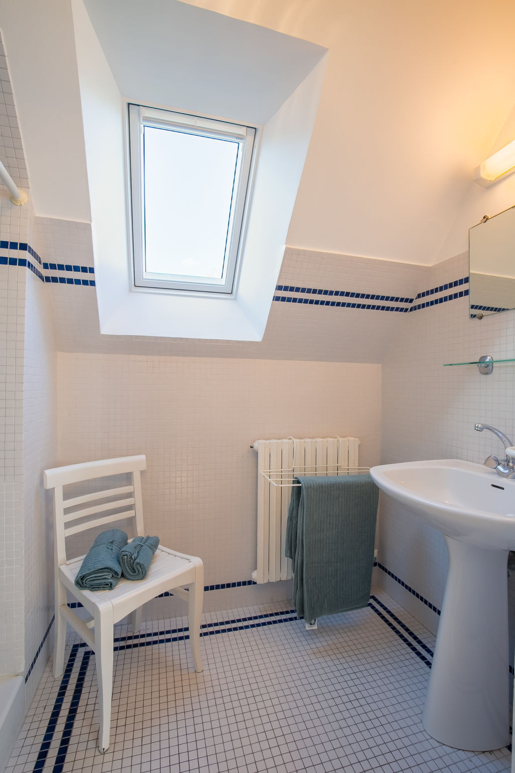 1 chambre, mansardée avec 1 grand-lit (140 cm, longueur 190 cm).