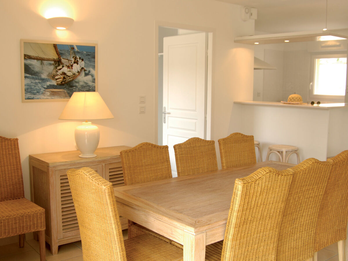 Clair, aménagement confortable et de bon goût: séjour/salle à manger avec table pour les repas et TV (satellite).
