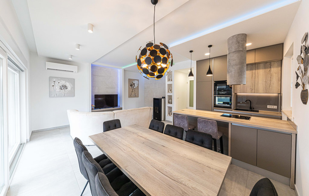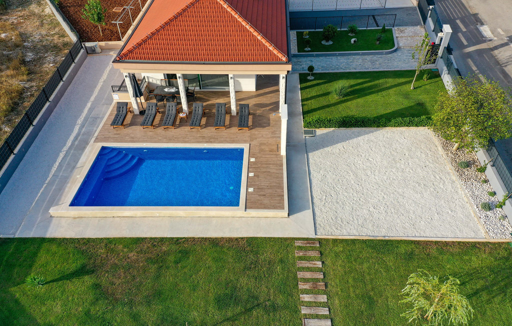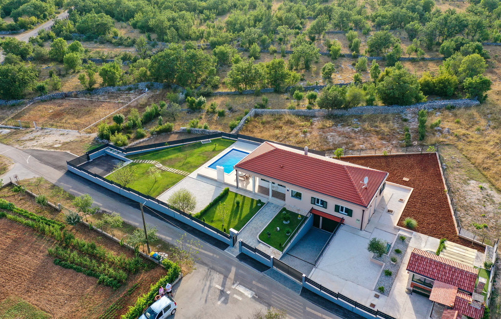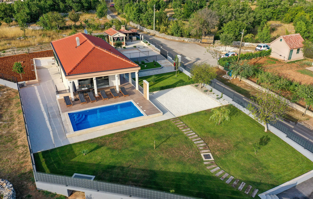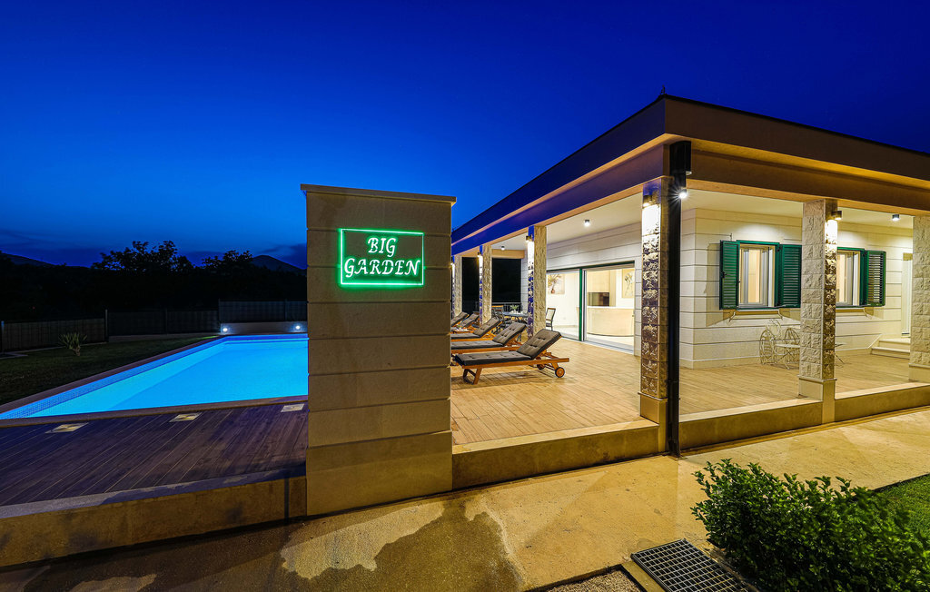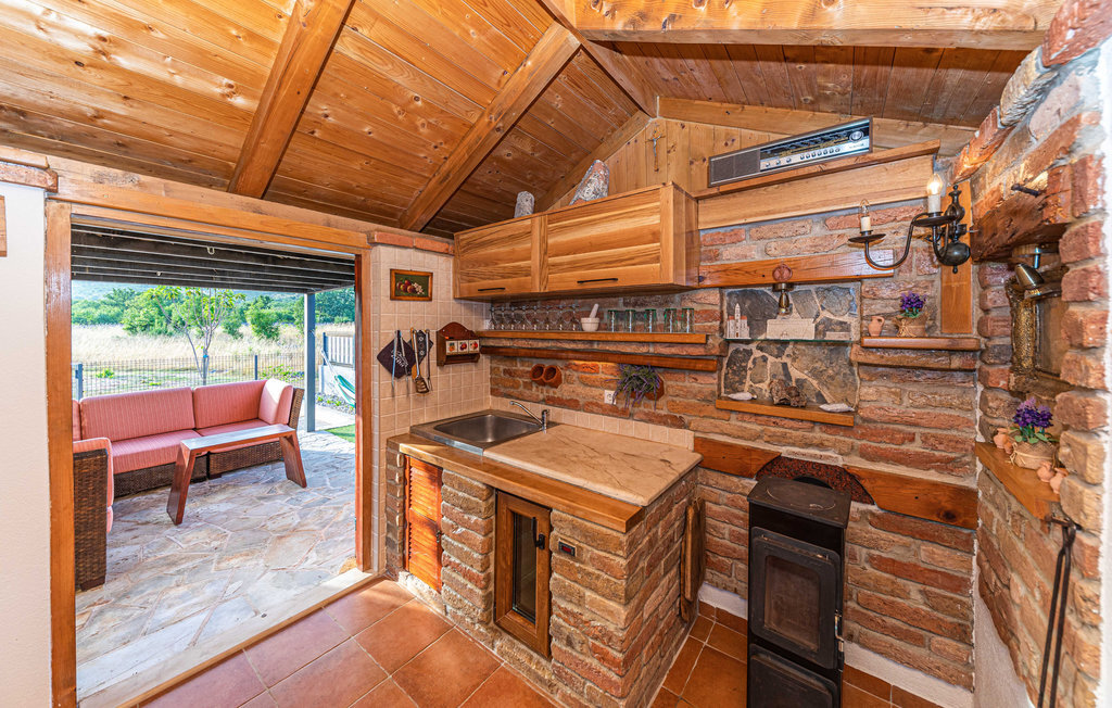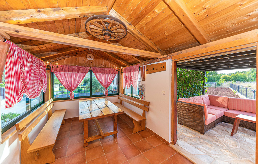 L'espace extérieur attrayant de la maison offre de nombreuses possibilités de passer de bons moments en plein air. Profitez à votre guise du soleil sur les différentes terrasses et rafraîchissez-vous dans la piscine privée avec vue sur les montagnes. Préparez de délicieux plats sur le barbecue et terminez la journée en plein air.