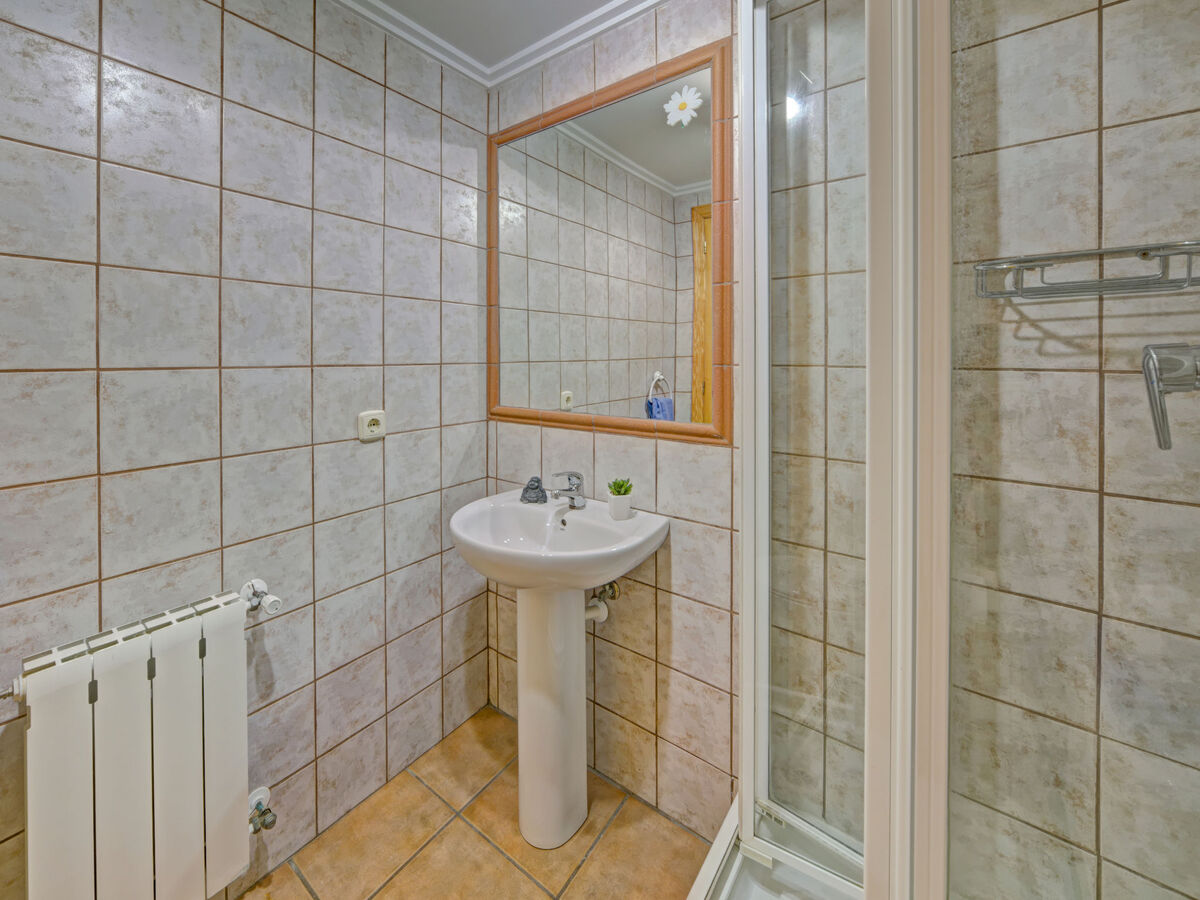 À l'étage supérieur: 1 chambre avec 1 grand-lit (135 cm, longueur 190 cm), bain/bidet/WC, air-conditionné et chauffage à air chaud.