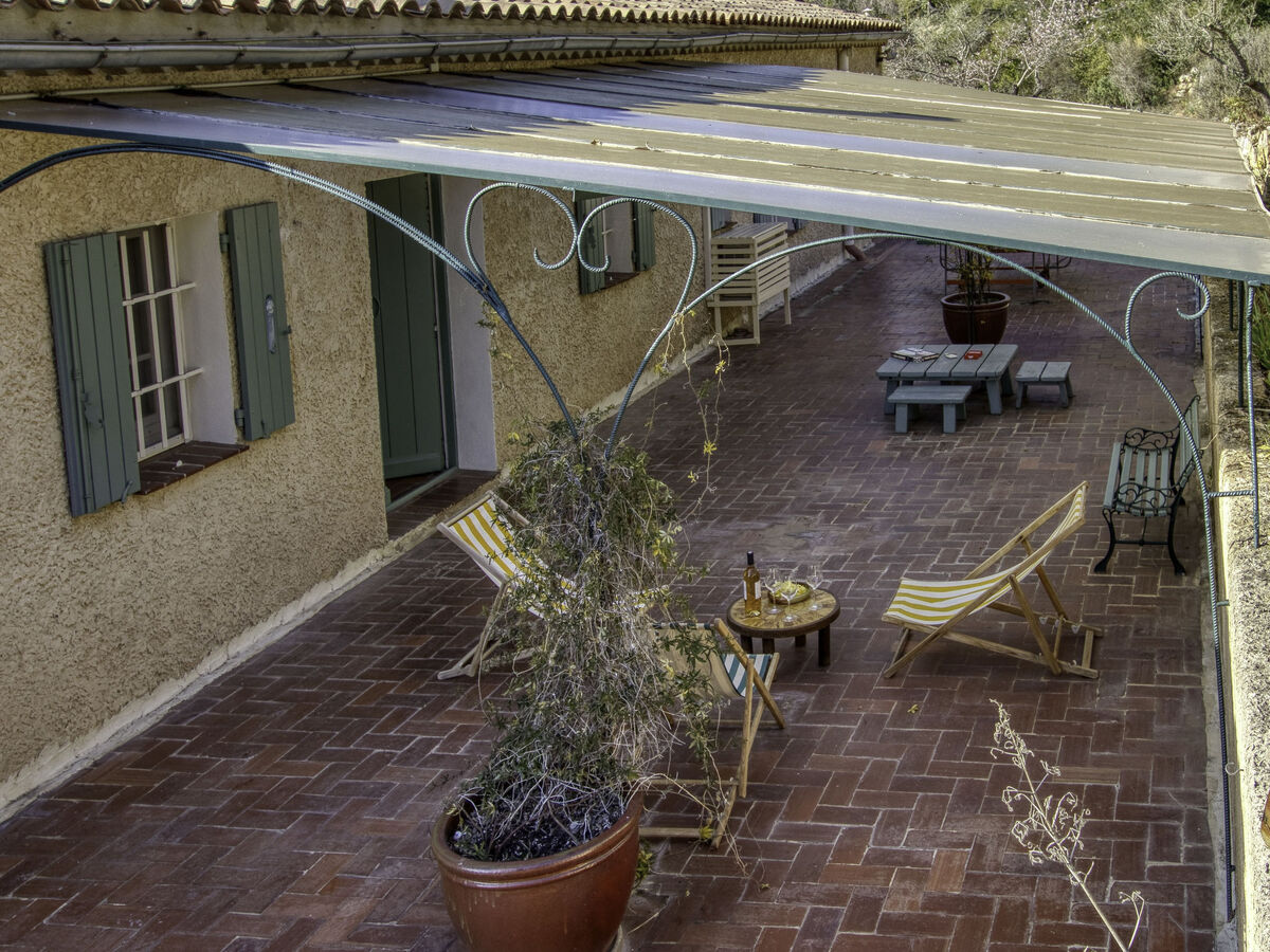 Maison individuelle "Le Mas de la Poterie", environnée par les arbres et vignobles.